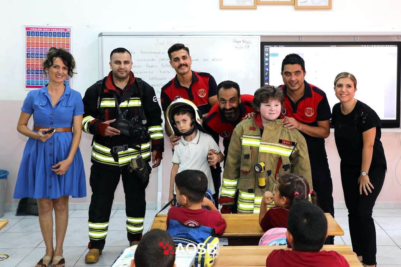 Eğlenceli ve eğitici etkinlikte, minik öğrencilere yangın tehlikeleri ve bu tehlikelere karşı nasıl güvenli kalacakları konusunda bilgilendirme yapıldı. Ayrıca yangın tatbikatları gerçekleştirerek, çocukların öğrendiklerini pratiğe dökmelerini sağladı. Geleceğin teminatı olan çocukların, yangın güvenliği konusunda bilinçlenmeleri için üzerine düşen sorumluluğu en iyi şekilde yerine getiren AOSB İtfaiye Biriminin etkinliği okulda bayram havası yaşattı.