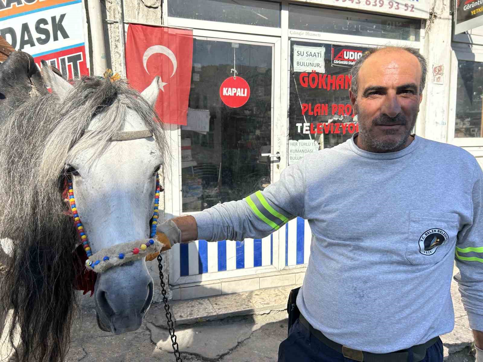 Hatay’ın dar ve engebeli sokaklarının bulunduğu Belen ilçesinde araç giremeyen dar sokaklarda çöpler her sabah temizlik işçisi Ahmet Özkök tarafından ‘Kıroğlan’ ismi verilen atla toplanıyor. Yıllardır süren gelenek, mahalle sakinleri tarafından da olumlu karşılanıyor.