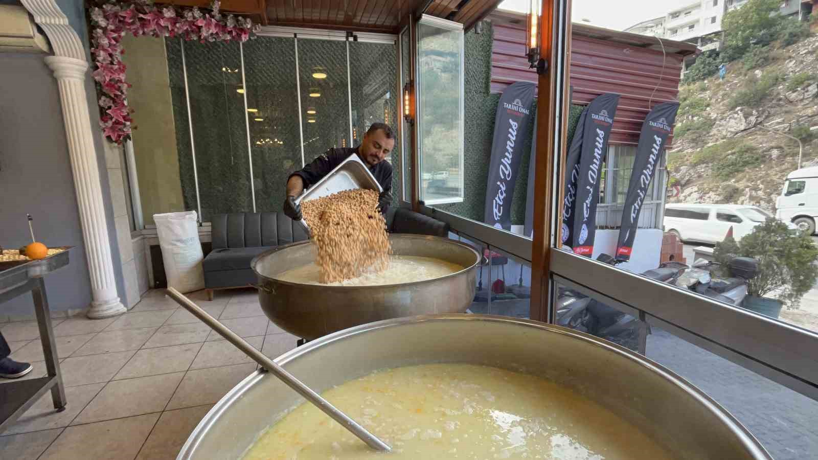 Hatay’ın Belen ilçesinde esnaf Yunus Emre Cömert, asırlardır süre gelen geleneği devam ettirerek 5 bin kişiye aşure dağıtımı gerçekleştirdi.