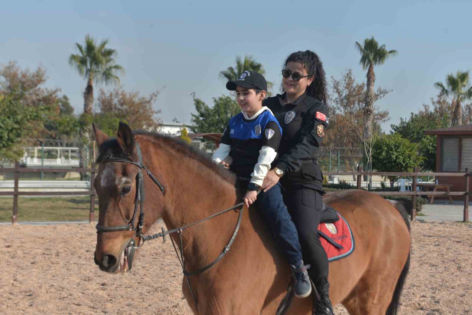 Adana’da ilkokul ikinci sınıf öğrencisi Poyraz atlı polis olma hayaliyle polisleri ve kendisini atın üzerinde çizdi. Adana polisi Poyraz’ın bu hayalini gerçeğe dönüştürerek üniforma giydirip ata bindirip unutmayacağı bir an yaşattı.