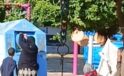 Giysi kumbarasına giren çocuk, topladığı kıyafetleri annesine verdi