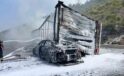 Kaza yapan tır ve otomobil alevlere teslim oldu