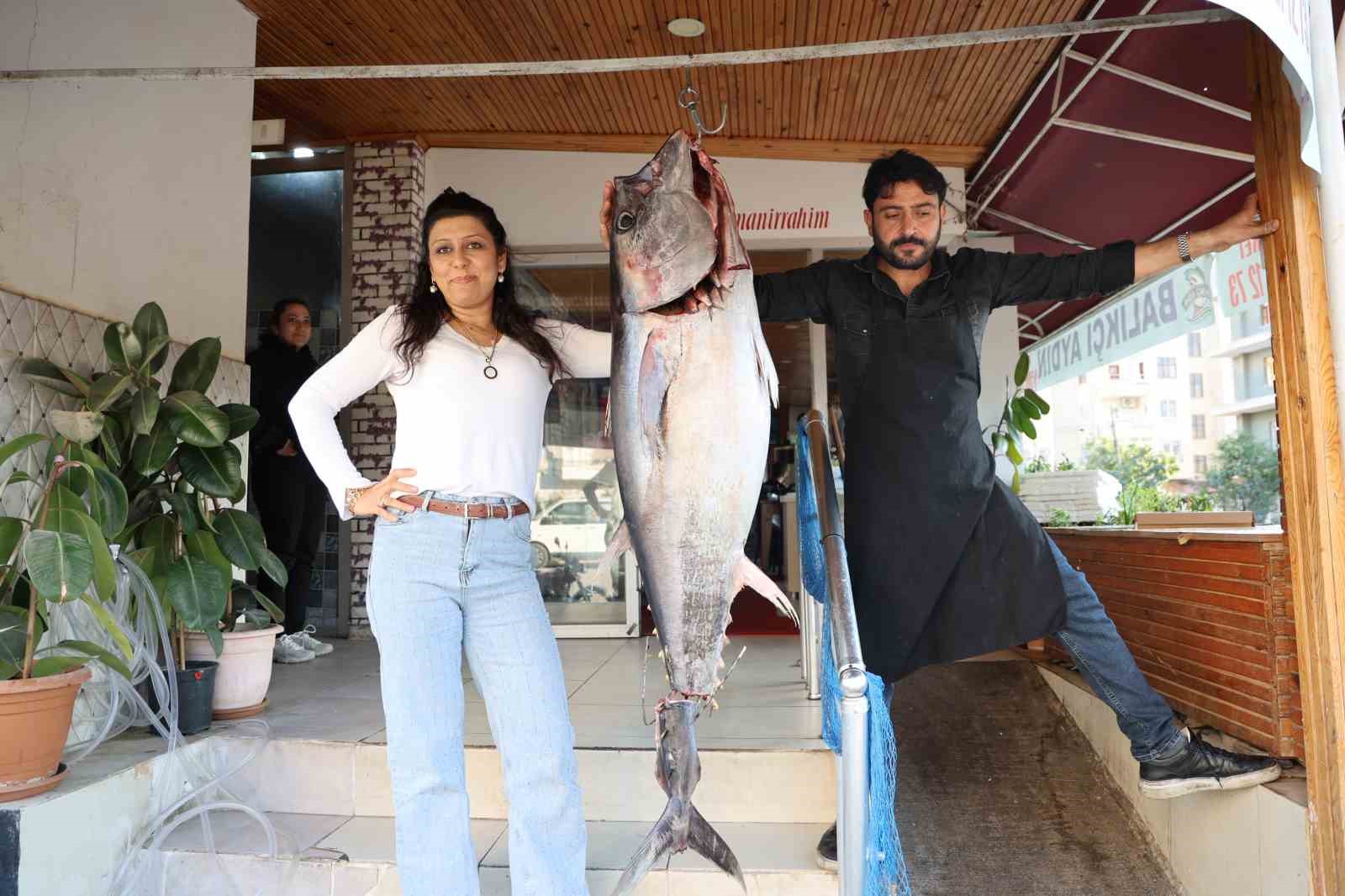 Kozan’da balıkçı Aydın Beştepe, 55 kilogram ağırlığında 1 metre 75 santimetre büyüklüğünde yakaladığı orkinos cinsi balığı dükkanının girişine astı. Balığı gören vatandaşlar fotoğraf çektirmek için birbiriyle yarıştı. Beştepe, “Kozan’a ilk kez orkinos balığı getirdik. Bir insan boyunda. Görenler inanmıyor maket sanıyorlar. Çok kişi geldi fotoğraf çektirdi” diye konuştu.