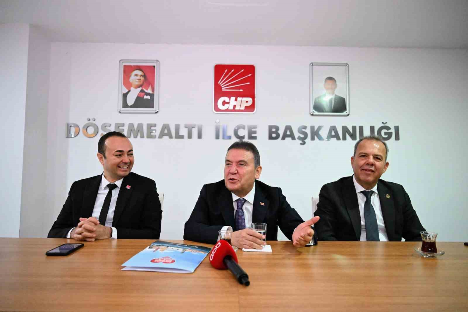 Döşemealtı ilçesini ziyaret eden ve çeşitli temaslarda bulunan Antalya Büyükşehir Belediye Başkanı Muhittin Böcek ilk olarak CHP Döşemealtı İlçe Başkanlığı’nı ziyaret etti. İlçe Başkanı Veli Çot, Gençlik Kolları Başkanı Kemal Çelik, Kadın Kolları Başkanı Selmay Atik ve partililer ile bir süre sohbet eden Başkan Böcek, 31 Mart seçimlerinde Antalya’da çok güzel başarılara imza atıldığını belirterek, parti emekçilerine teşekkür etti.