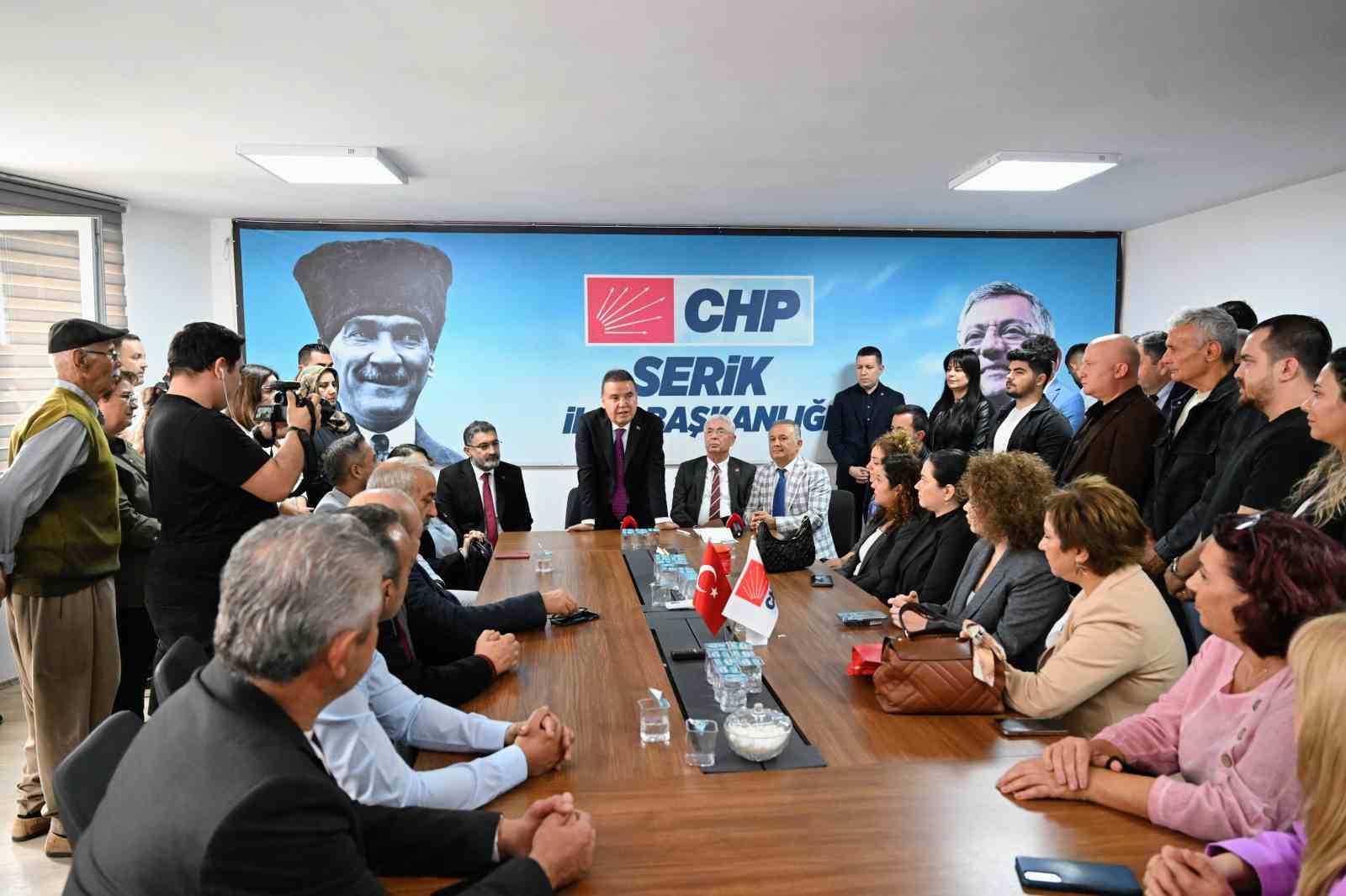 Antalya Büyükşehir Belediye Başkanı Muhittin Böcek, Cumhuriyet Halk Partisi (CHP) Serik İlçe Başkanlığını ziyaret etti. Ardından Serik Belediye Başkanı Kadir Kumbul’u makamında ziyaret eden Başkan Böcek, Serik Belediyesi’nin Büyükşehir Belediyesi’nden taleplerini dinledi. Başkan Böcek, Serik’te yapılması gereken projeleri tek tek hayata geçireceklerini kaydetti. Serik’in bugünü ve yarını için önemli çalışmalar yürüttüklerini söyleyen Başkan Muhittin Böcek, Kadir Başkan ile birlikte Serik’te halkın mutluluğu için birlikte çalışmaya devam edeceklerini belirtti.