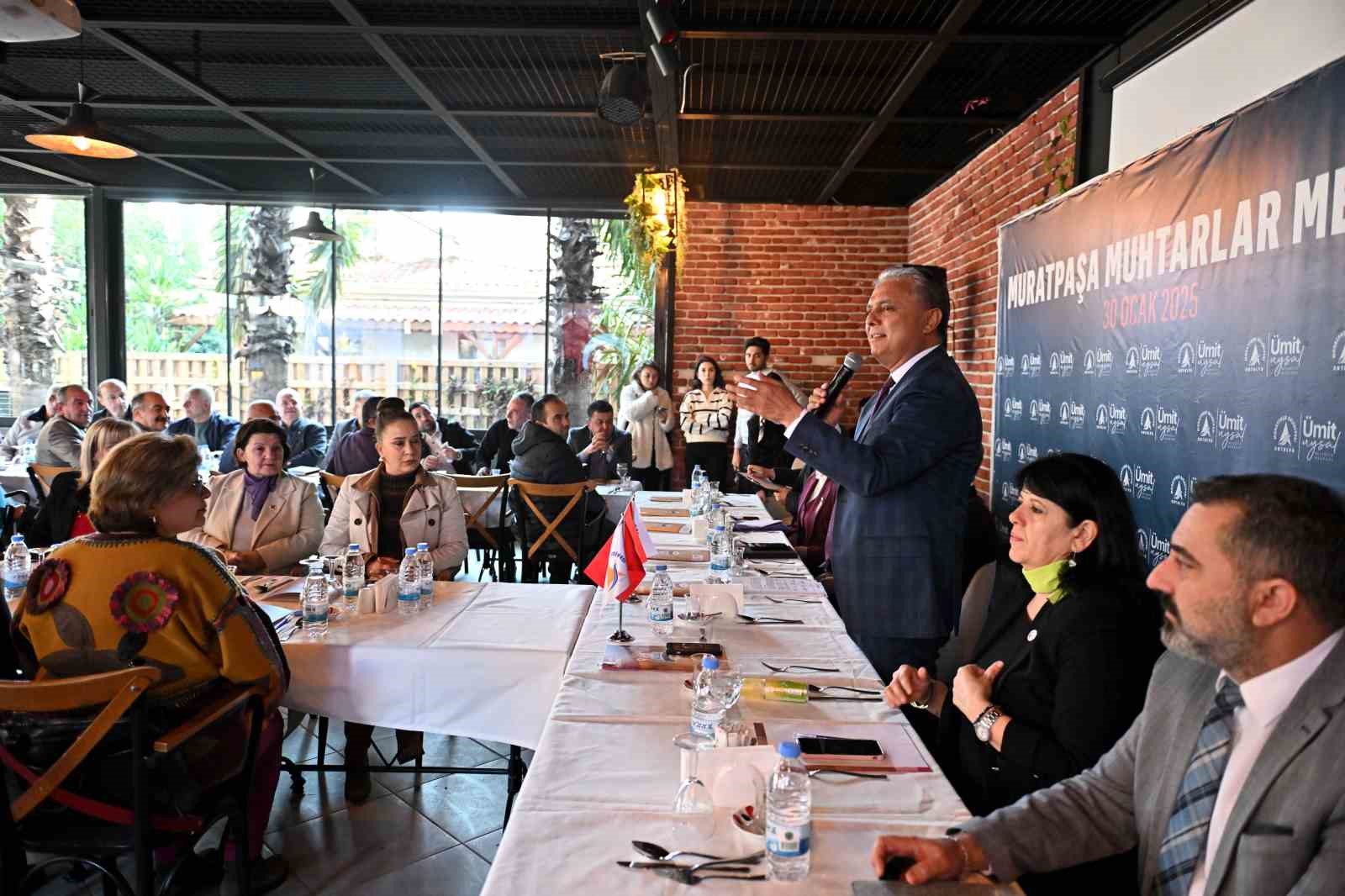 Muratpaşa’da yılın ilk Muhtarlar Meclisi, Adalya Vakfı Engelsiz Kafe’de gerçekleştirildi. Başkan Ümit Uysal’ın başkanlığında toplanan meclise belediye başkan yardımcıları, birim müdürleri ve Muratpaşa Muhtarlar Derneği Başkanı Ahmet Akcan katıldı.