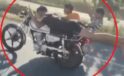 Motosikleti üzerine yatarak sürdü, yanındaki 2 kişinin de canını hiçe saydı