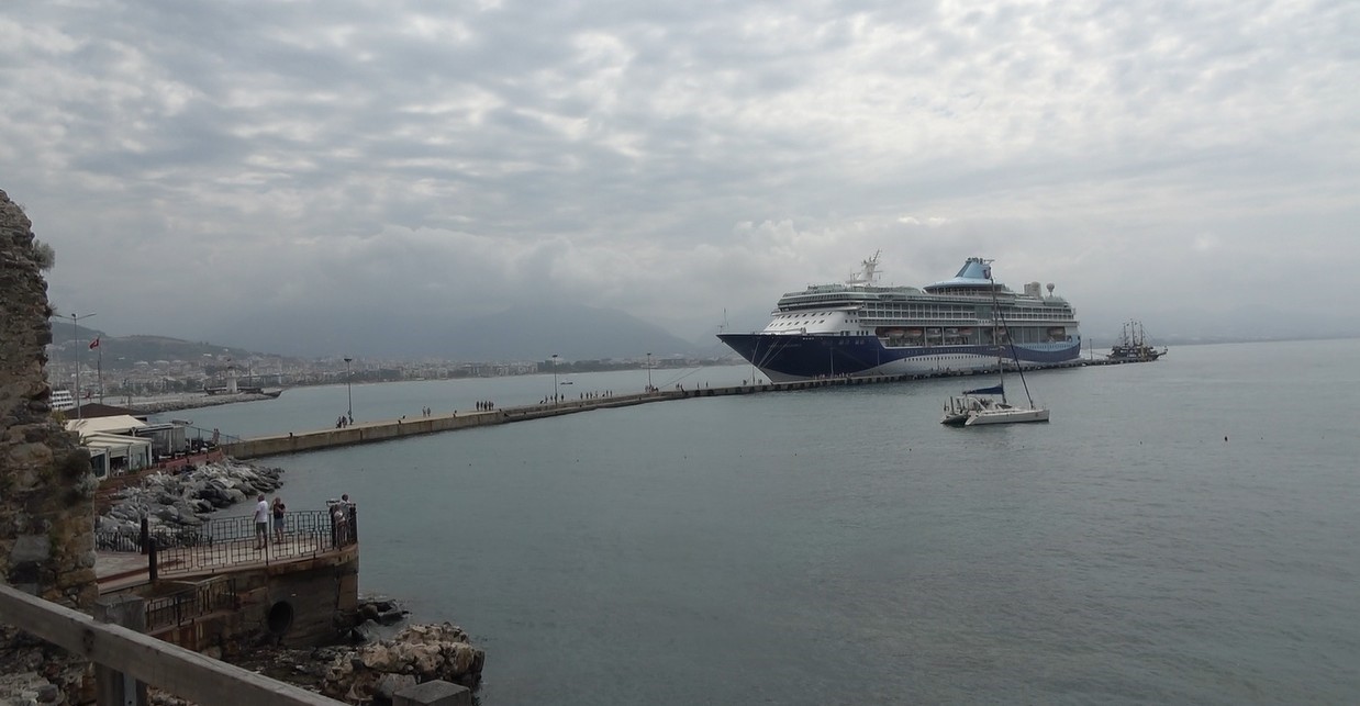Akdeniz’in önemli turizm ilçelerinden Alanya’ya sabah saatlerinde Bahama bandıralı “Marella Discovery 2” isimli kruvaziyer gemisi limana yanaştı. Bin 795 yolcu ve 729 mürettebatın bulunduğu gemide yolcuların büyük kısmının İngiliz vatandaşı olduğu öğrenildi. Marmaris’ten gelen kruvaziyer yolcu gemisinin akşam saat 18.00 sıralarında Rhodos’a gitmek üzere Alanya’dan ayrılması bekleniyor. Turistler şehir merkezini gezmek için gemiden inerken bazısı da tarihi ve turistik bölgeleri ziyaret etti.