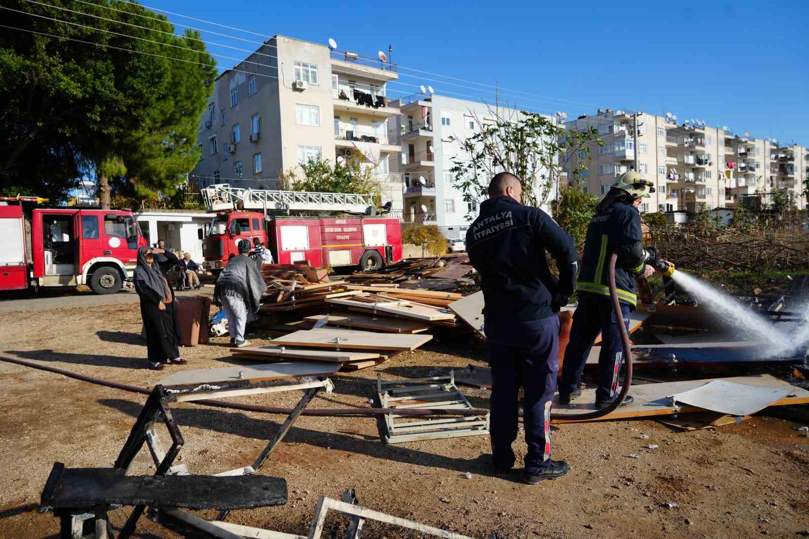 Antalya’da boş bir arazideki tahta parçalarından çıkan yangın, itfaiye ekiplerinin hızlı müdahalesiyle kısa sürede söndürüldü.