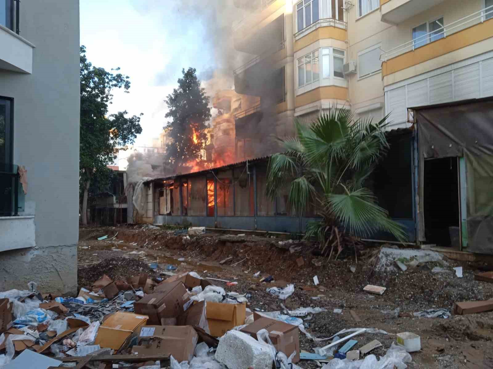 Antalya’nın Alanya ilçesinde sabah saatlerinde çıkan yangın, çevre binalara sıçramadan söndürüldü.