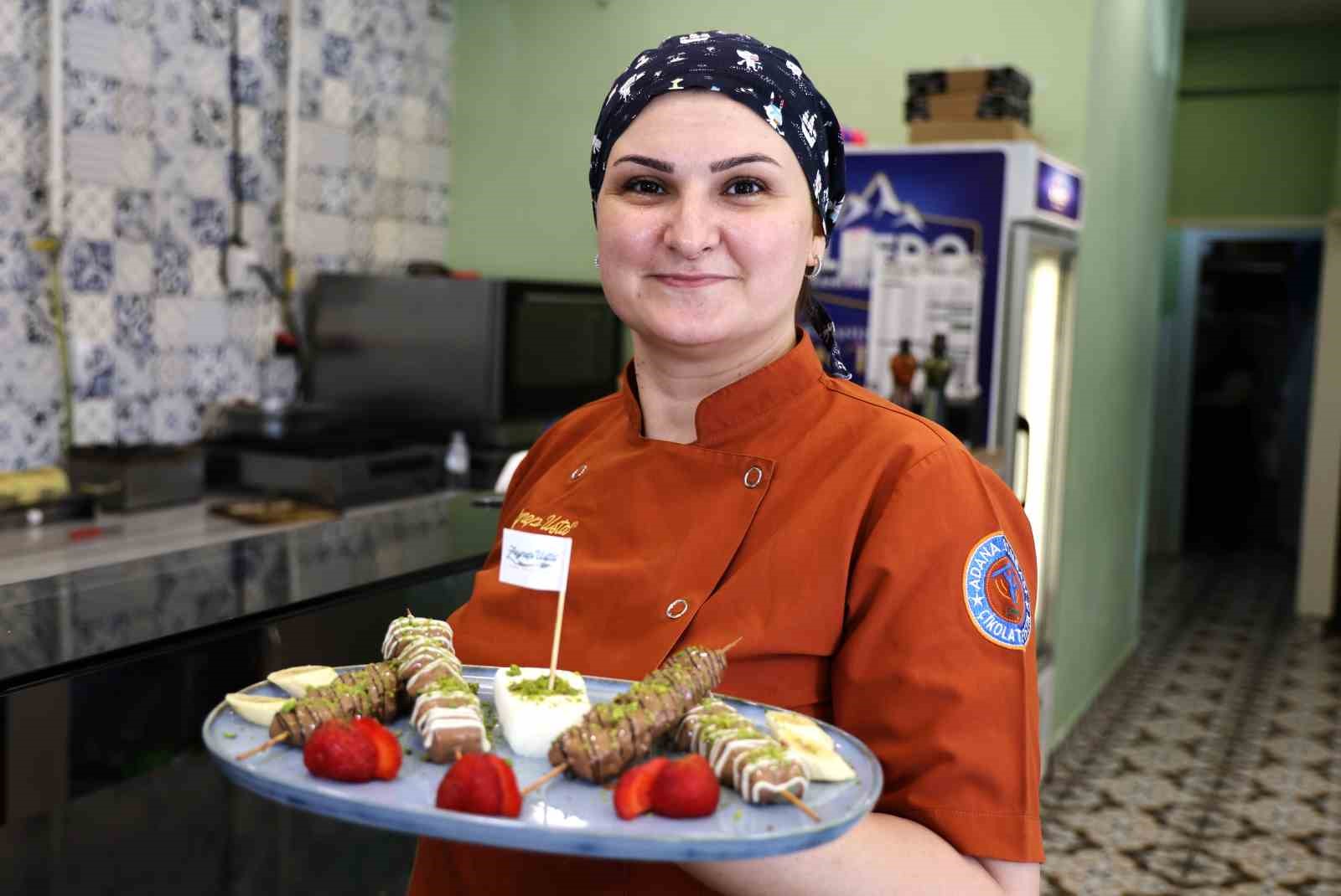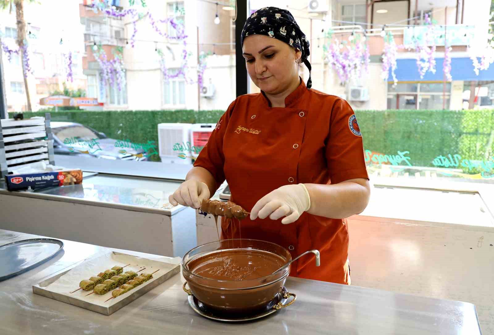Adanalı tatlıcı, geleneksel katmeri çeşitlendirmek için arayışa girerek ‘çöp şiş katmer’ isimli ürünü menüsüne ekledi. Tatlıcı, taleplere yetişemediği çöp şiş katmer için tescil başvurusu yapmaya hazırlanıyor.