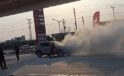 Lüks otomobil dumanlar çıkarak akaryakıt istasyonuna girdi