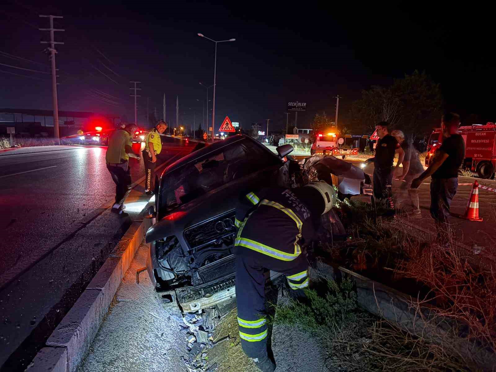 Kaza, saat 01.30 sıralarında Burdur’un Bucak ilçesi Alparslan Türkeş Bulvarı Bölge Trafik Denetleme İstasyonu yakınlarında meydana geldi. Edinilen bilgilere göre Antalya’dan Bucak yönüne seyreden Furkan A. (28) idaresindeki 15 EH 008 plakalı Audi marka otomobil, kontrolden çıkarak refüjdeki aydınlatma direğine çarparak alev aldı. Kazada yaralanan sürücü Furkan A. ve yanındaki Beyzanur D. (22) vatandaşlarca araçtan çıkarılarak güvenli bölgeye taşındı. Çevredekilerin 112 Acil Çağrı Merkezi’ne ihbarı üzerine bölgeye sağlık, itfaiye ve polis ekipleri sevk edildi. İtfaiye ekiplerinin hızlı müdahalesiyle yangın kontrol altına alınarak söndürüldü. Yaralılar sağlık ekiplerinin ilk müdahalesinin ardından ambulansla Bucak Devlet Hastanesi’ne kaldırıldı. Yaralıların durumlarının iyi olduğu öğrenildi. Kaza ile ilgili inceleme başlatıldı.