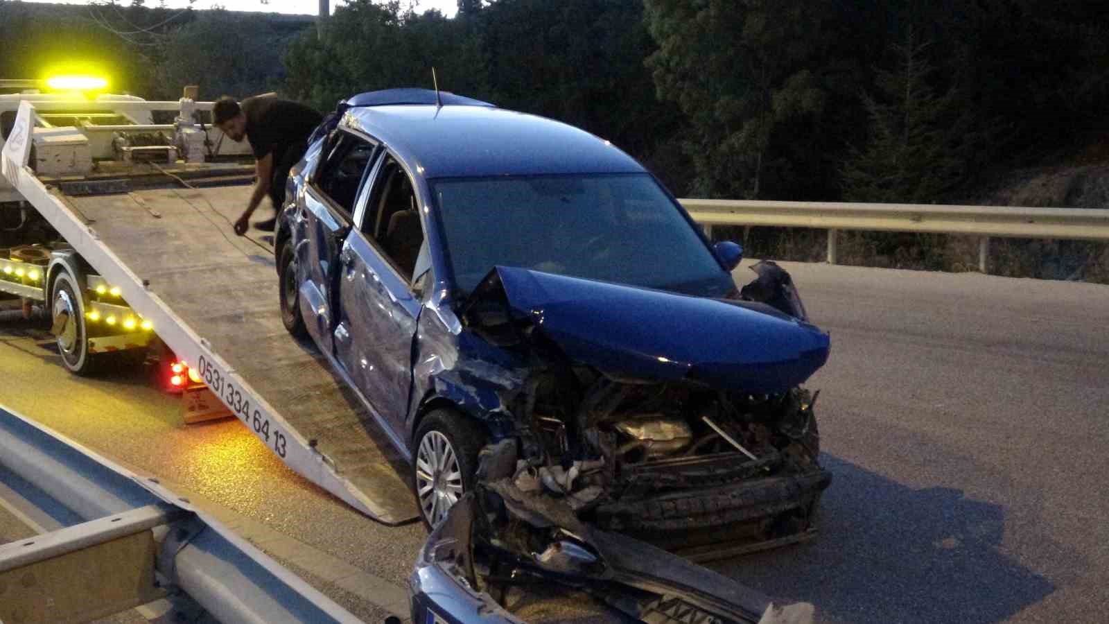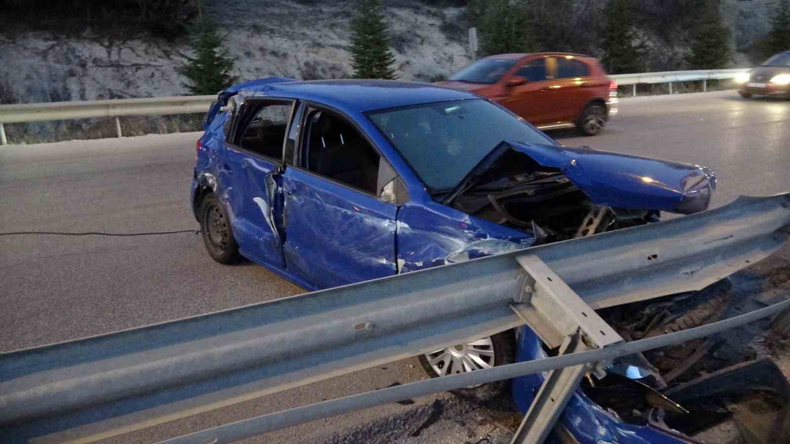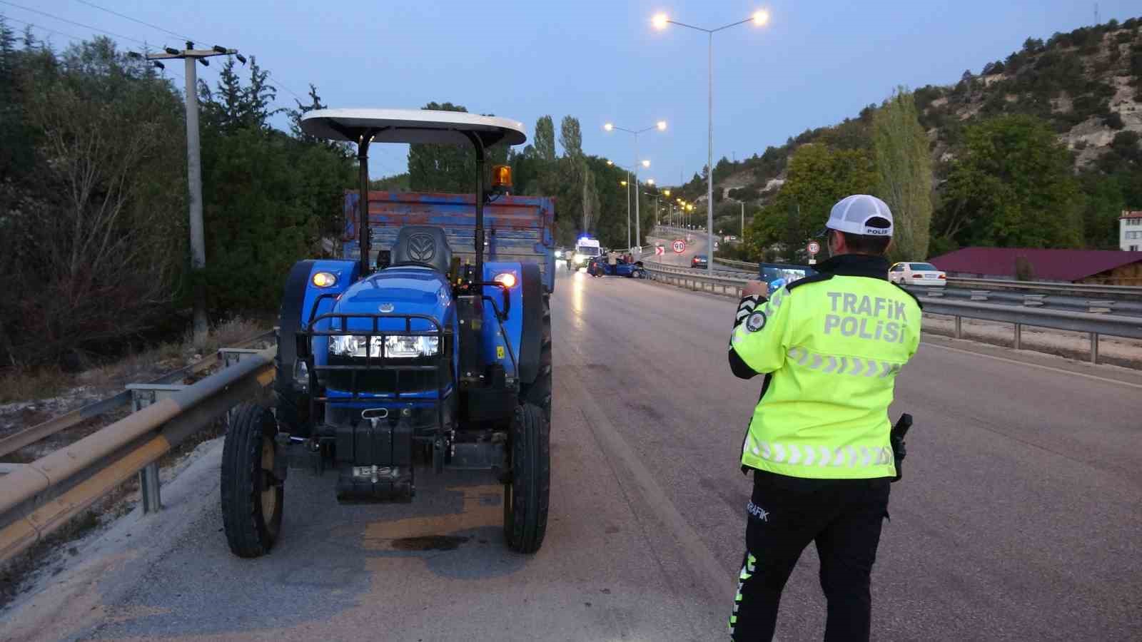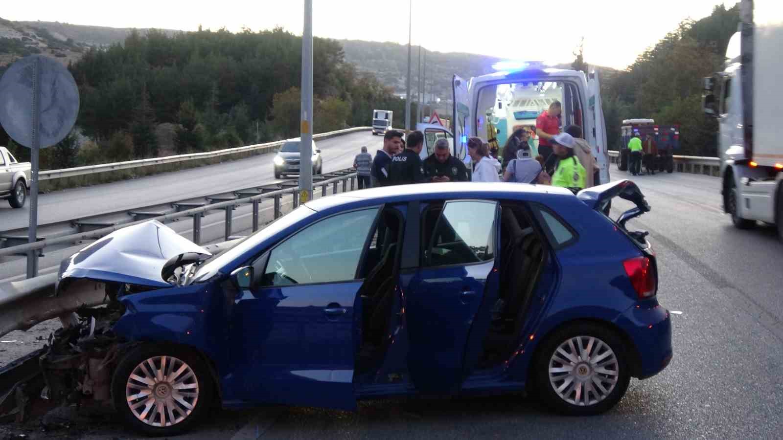Burdur-Antalya karayolunda kontrolden çıkıp önce bariyere ardından traktöre çarpan otomobildeki 5 kişi yaralandı.