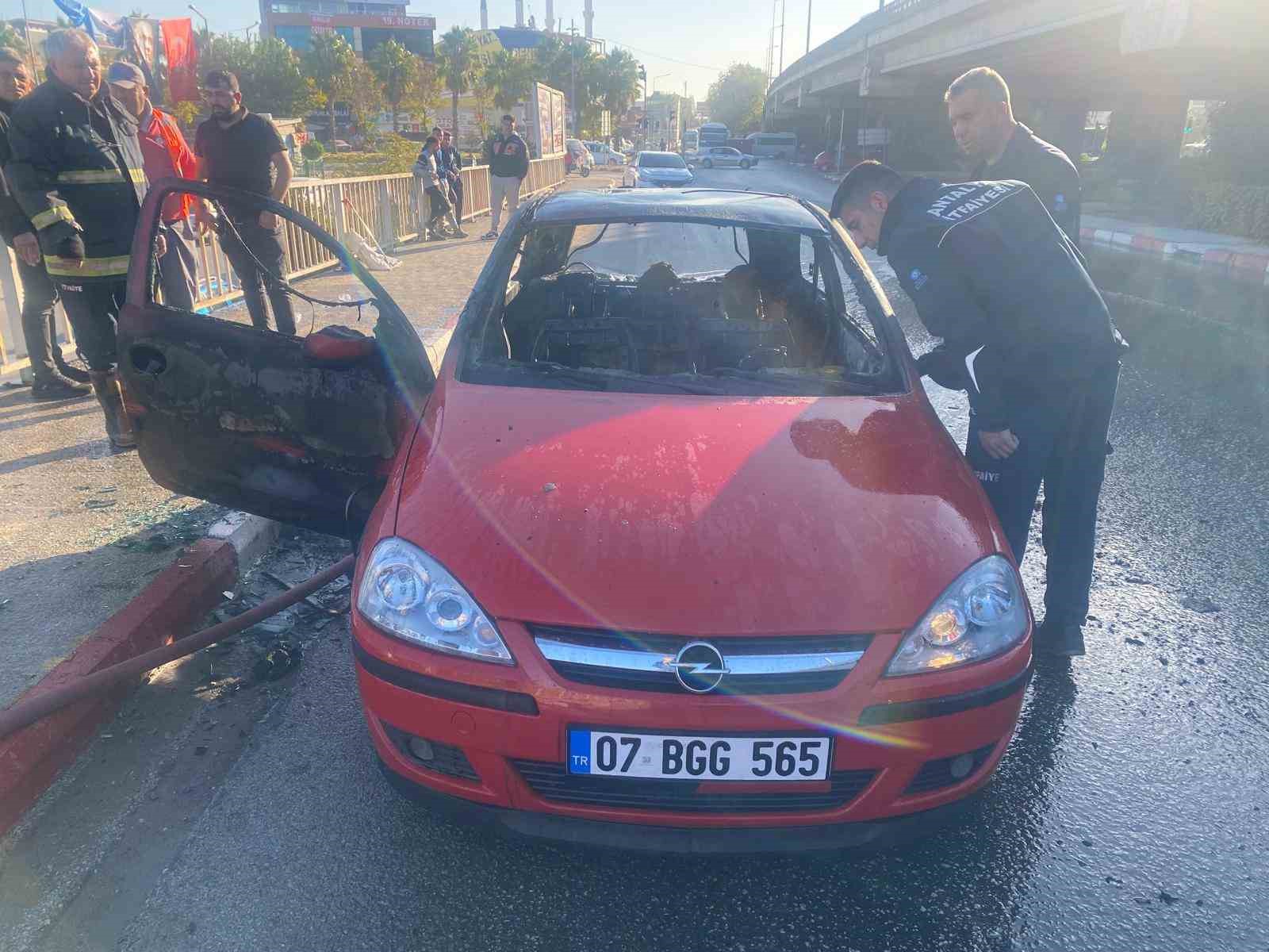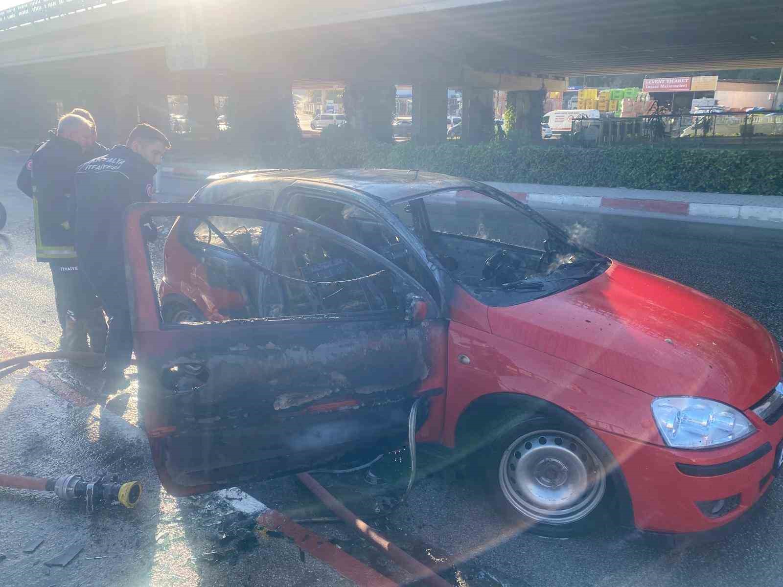 Antalya’da bir otomobil, çakmaklıktan çıktığı değerlendirilen yangın sonucu kullanılamaz hale geldi.