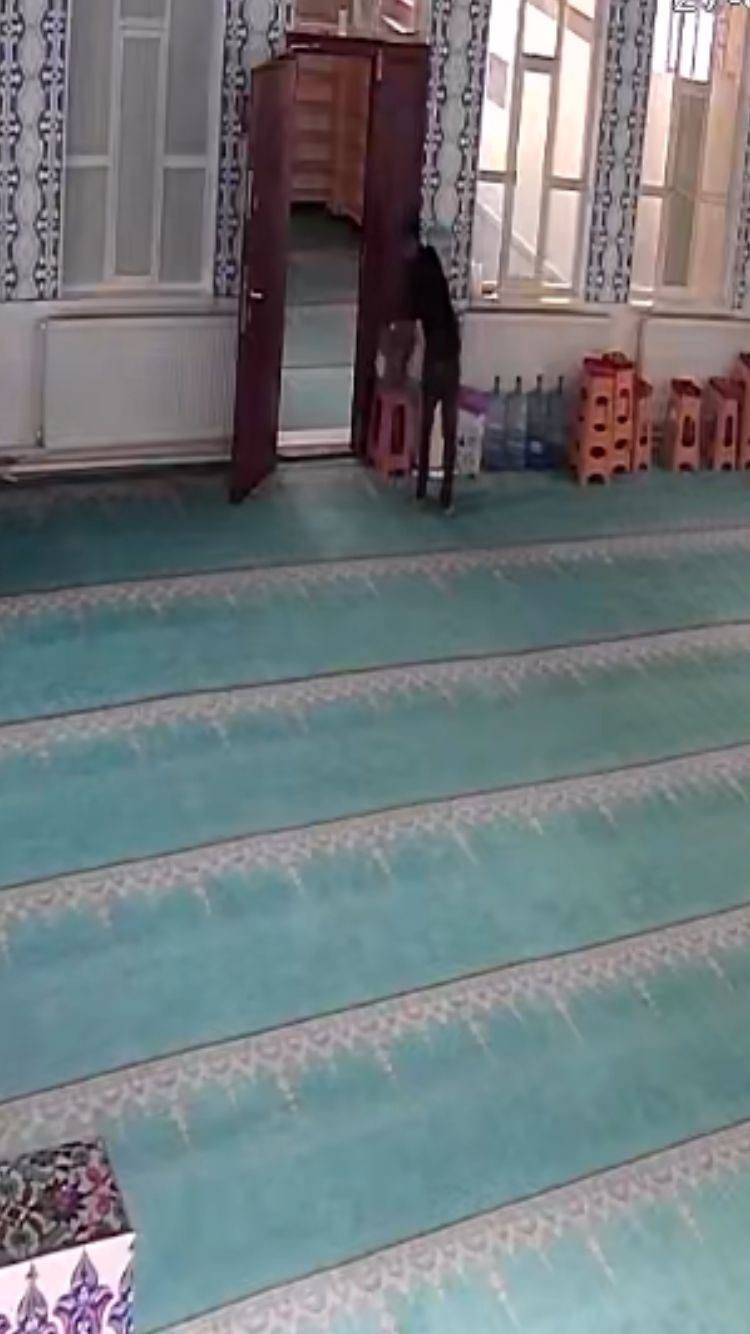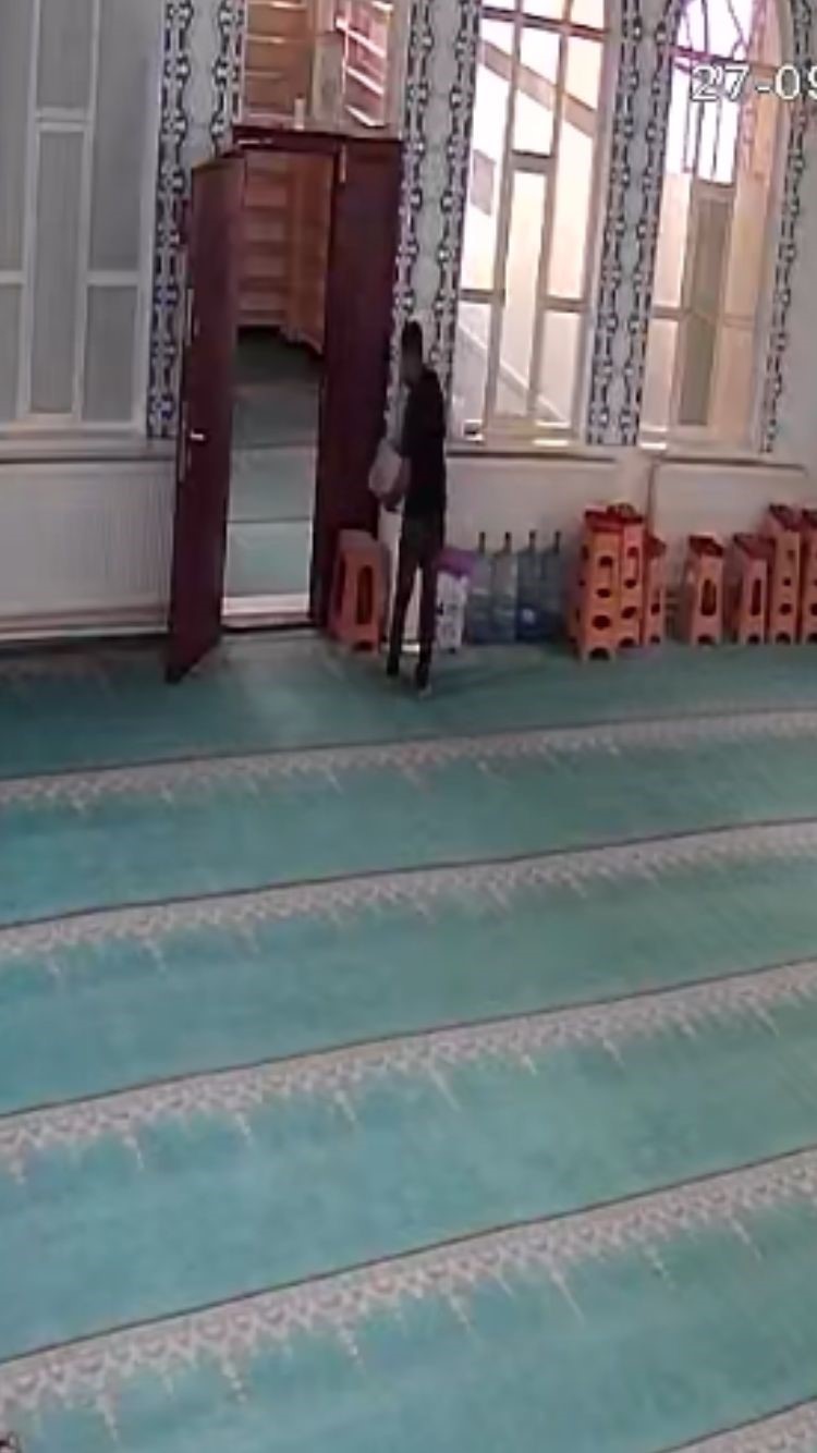 Zanlının 2 gün arayla farklı camilere girerek etrafı kollayıp sadaka kutularının içindeki paraları çalma anı ise anbean kameralara yansıdı. İlk görüntüde Kameriye Camii’ne gelen F.A.’nın içeriyi kolaçan ettikten sonra kapıyı kapatıp sadaka kutusunu ters çevirerek içindeki parayı alıp camiden çıktığı görülüyor. İkinci görüntüde ise cami içerisinde Kur’an-ı Kerim okuyormuş gibi yapan hırsızın cami boşalınca etrafı kolaçan edip kutuyu ters çevirerek düşen paraları alıp camiden ayrıldığı görülüyor.