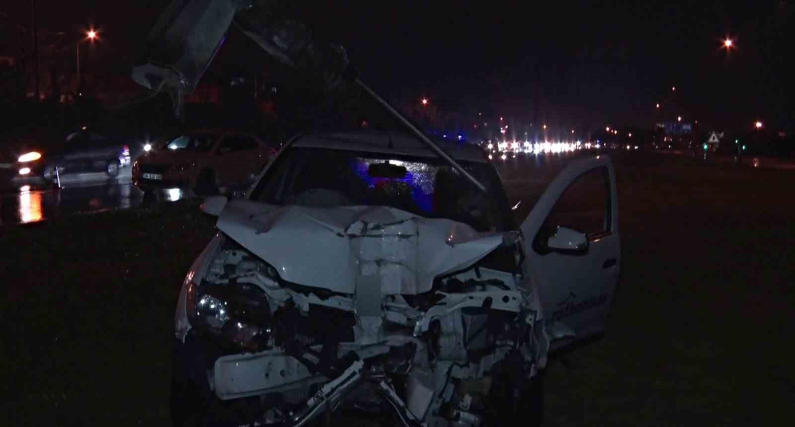 Çarptığı aydınlatma direği aracın üzerine devrildi: 2 yaralı
