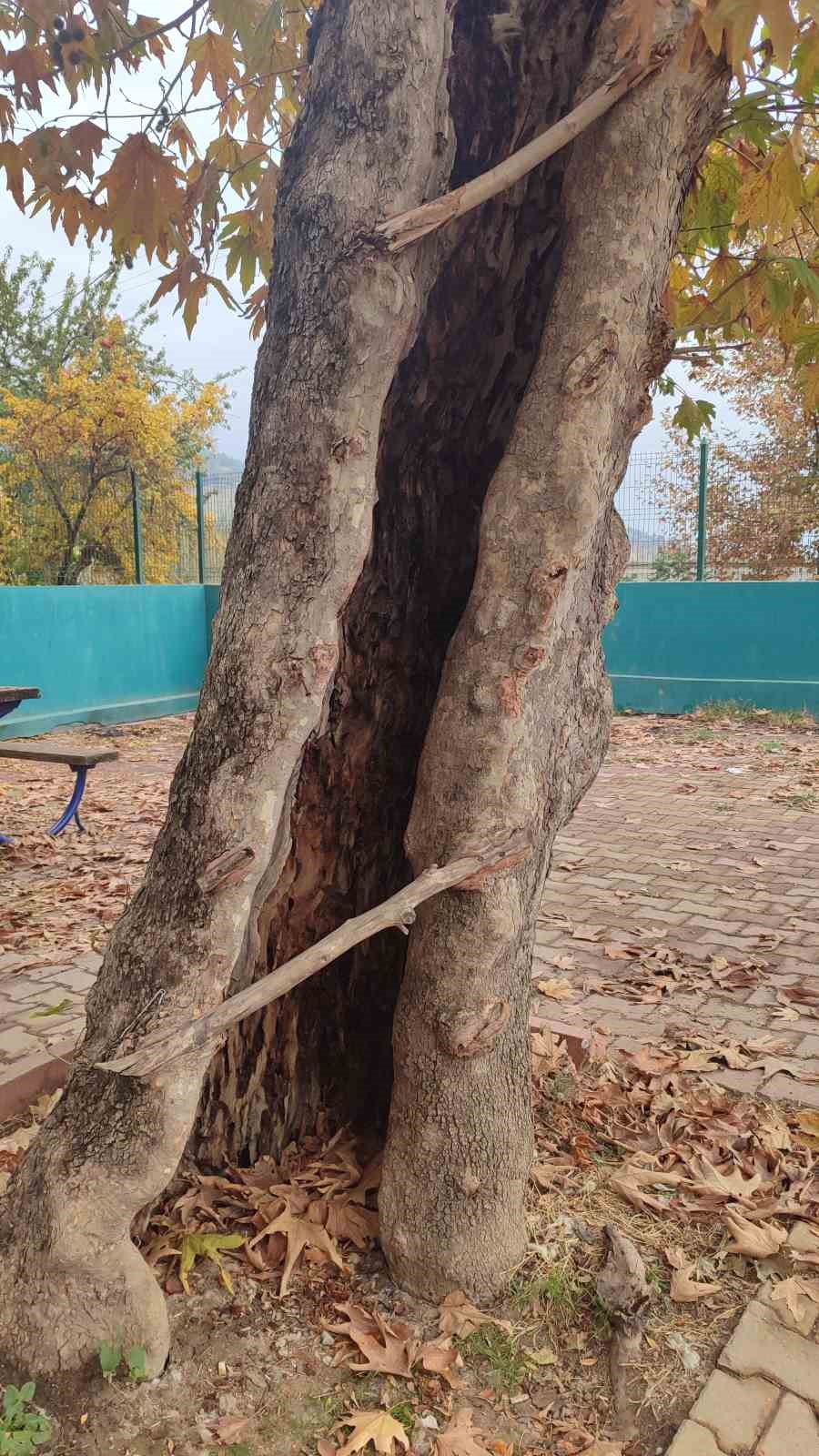 Kahramanmaraş’ta içi oyulmuş çınar ağacı yıllara meydan okuyor.