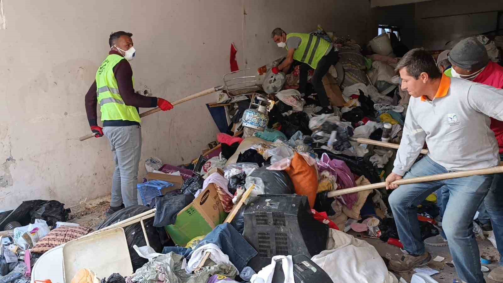 Antalya’da Manavgat Belediyesi Zabıta Müdürlüğü ekipleri yaklaşık 1 ay önce Aşağı Pazarcı Mahallesi 1054 Sokak’ta Ahmet Y. isimli şahsın ikamet olarak kullandığı zemin kattaki yaklaşık 100 metrekarelik dükkanın çöp ev olduğunu belirledi. Ekipler, ikametinde topladığı çöpleri istif ettiği belirlenen Ahmet Y.’ye çöpleri boşaltması için 2 kez süre verdi. Ahmet Y.’nin verilen süre içerisinde çöpleri boşaltmaması üzerine polis gözetiminde Manavgat Belediyesi ekipleri tarafından boşaltılmasına karar verildi.