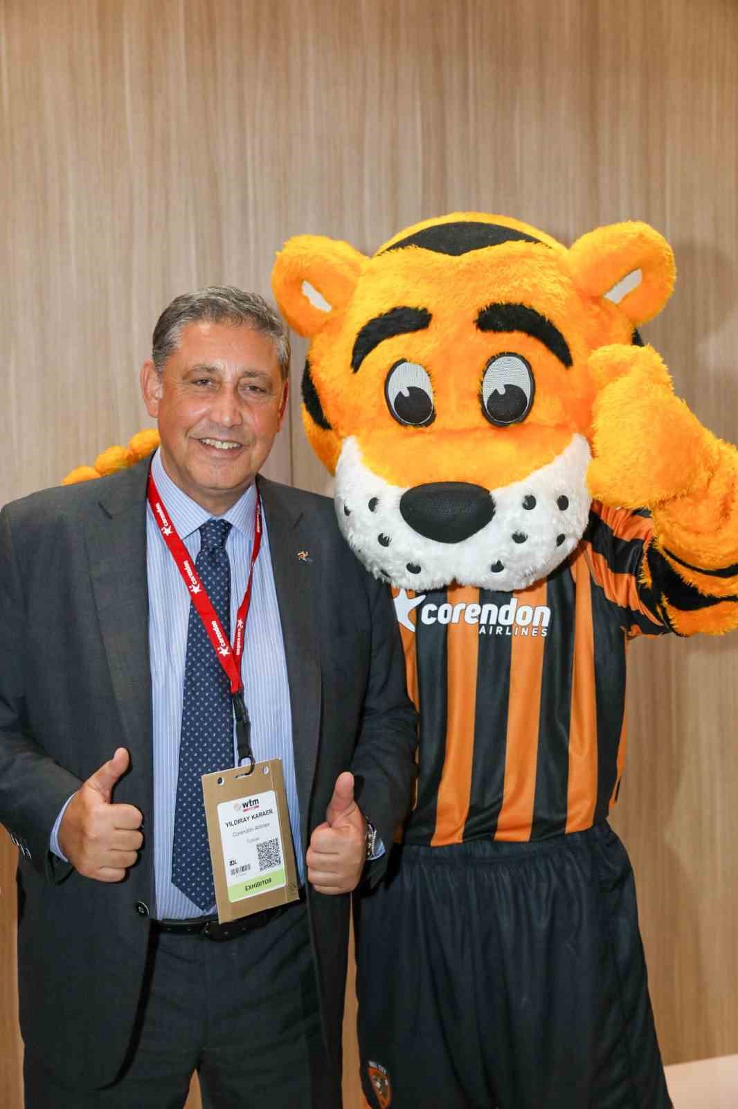 Corendon Airlines’ın standında; markanın seyahat sponsoru olduğu İngiltere’nin köklü kulüplerinden Hull City’nin maskotu da yer aldı. Takımın sevimli maskotu yüksek fuara renk katarken, katılımcılara eğlenceli oyunlarla imzalı tişörtler ve atkılar hediye edildi. Standda ayrıca, kurulan büyük ekranda şirketin hizmet verdiği destinasyonlarla ve Anadolu Efes Spor Kulübü sponsorluğu iş birliğiyle ilgili keyifli görüntüler paylaşıldı.