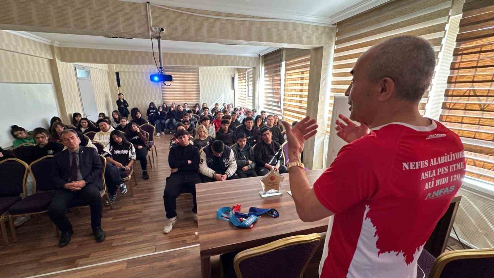 İnsan anatomisi hakkında öğrendiği bilgileri öğrencilere aktaran Ali Bıdı, “İş hayatınızda başarılı olmak için sağlıklı bir yaşam da sürdürmek zorundasınız. Hangi sporu istiyorsanız yapın ancak asla hareketsiz kalmayın. Düzenli spor ve sağlıklı beslenme konusunda asla taviz vermeyin” diye konuştu.