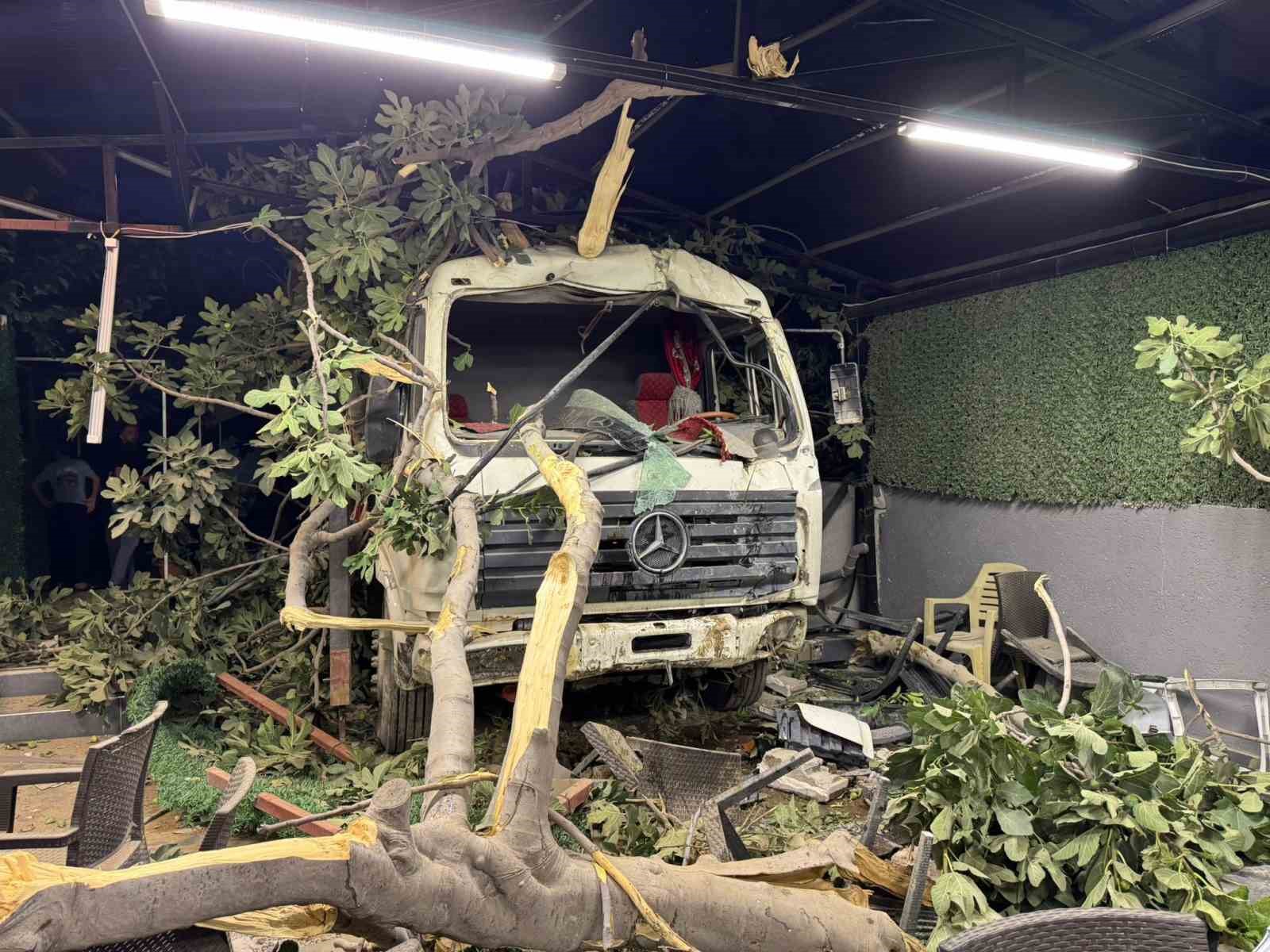 İş yerinde sipariş beklediği sırada hafriyat kamyonunun uçarak iş yerine girdiğini ifade eden Ahmet Aksu, “Ben bu iş yerinde motokurye olarak çalışıyorum. Dışarıda sipariş beklerken yüksek ve gürültülü bir ses geldi. İçeriye girip baktığımda hafriyat kamyonu bahçeye uçarak dükkana girdi. Kentte devam eden orman yangını nedeniyle helikopter diye düşünüyordum ama gökyüzünde helikopter olmayınca içeriye baktığımda kamyonu gördüm. Zararımız var. Masalarımız, sandalyelerimiz ve ağaçlarımız zarar gördü. Bir de müşterimizin ayağından hafif yaralanması oldu. Allah bir daha göstermesin. Bu durumun olacağı hayatta aklımıza gelmezdi” ifadelerini kullandı.