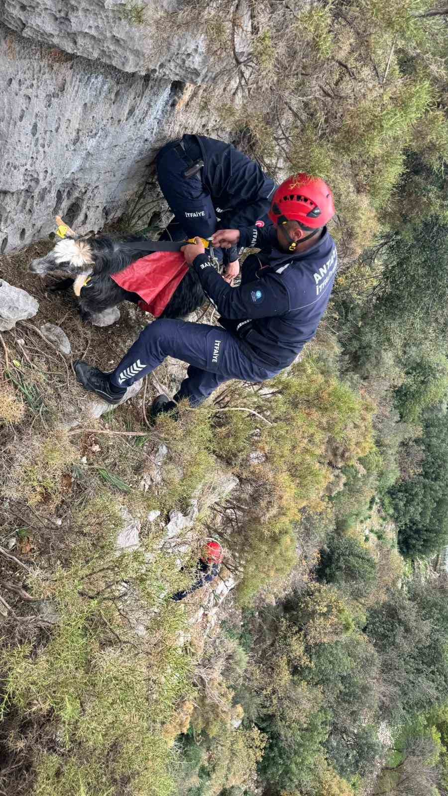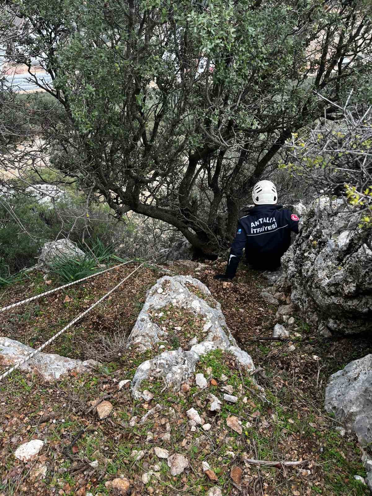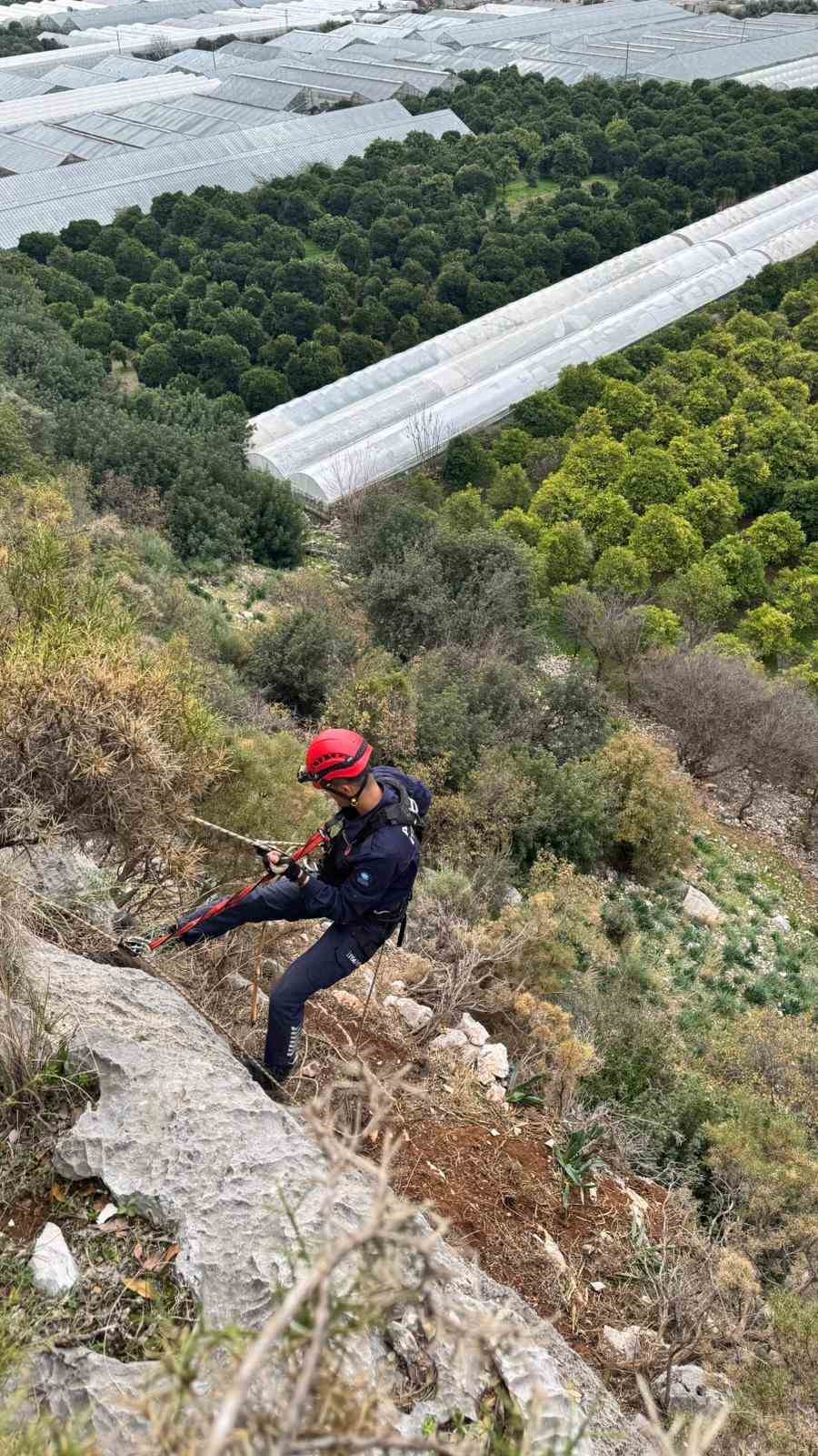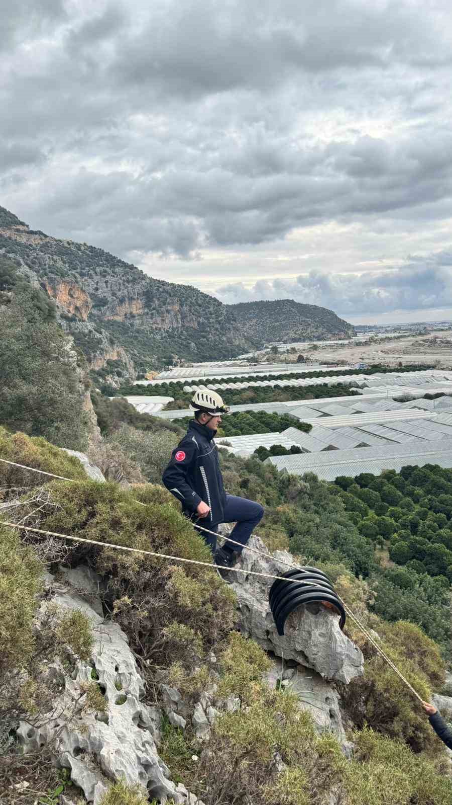 Antalya’nın Demre ilçesi Köşkerler Mahallesi Dere mevkisinde dağlık alanda bir keçinin mahsur kaldığı yönünde ihbar alan Antalya Büyükşehir Belediyesi Demre İtfaiyesi ekipleri harekete geçti. Bölgeye ulaşan itfaiye ekibi ipli istasyon kurulumu gerçekleştirdi. Yaklaşık 300 metre yükseklikte 3 gündür mahsur kalan keçiye, itfaiye eri 3 saatlik çalışma sonunda ulaştı. Keçiyi üçgen sedyeye bağlayan itfaiye eri, keçi ile birlikte ipli istasyonla aşağı indi. Antalya Büyükşehir Belediyesi Demre İtfaiye ekipleri Demre Yavu Mahallesi Kyaneai Antik Kenti’nin bulunduğu bölgede kayalık alanda mahsur kalan keçiyi de kurtardı. Halatlarla keçinin olduğu bölgeye ulaşan itfaiye eri, keçiyi güvenli şekilde bölgeden aşağı indirdi.