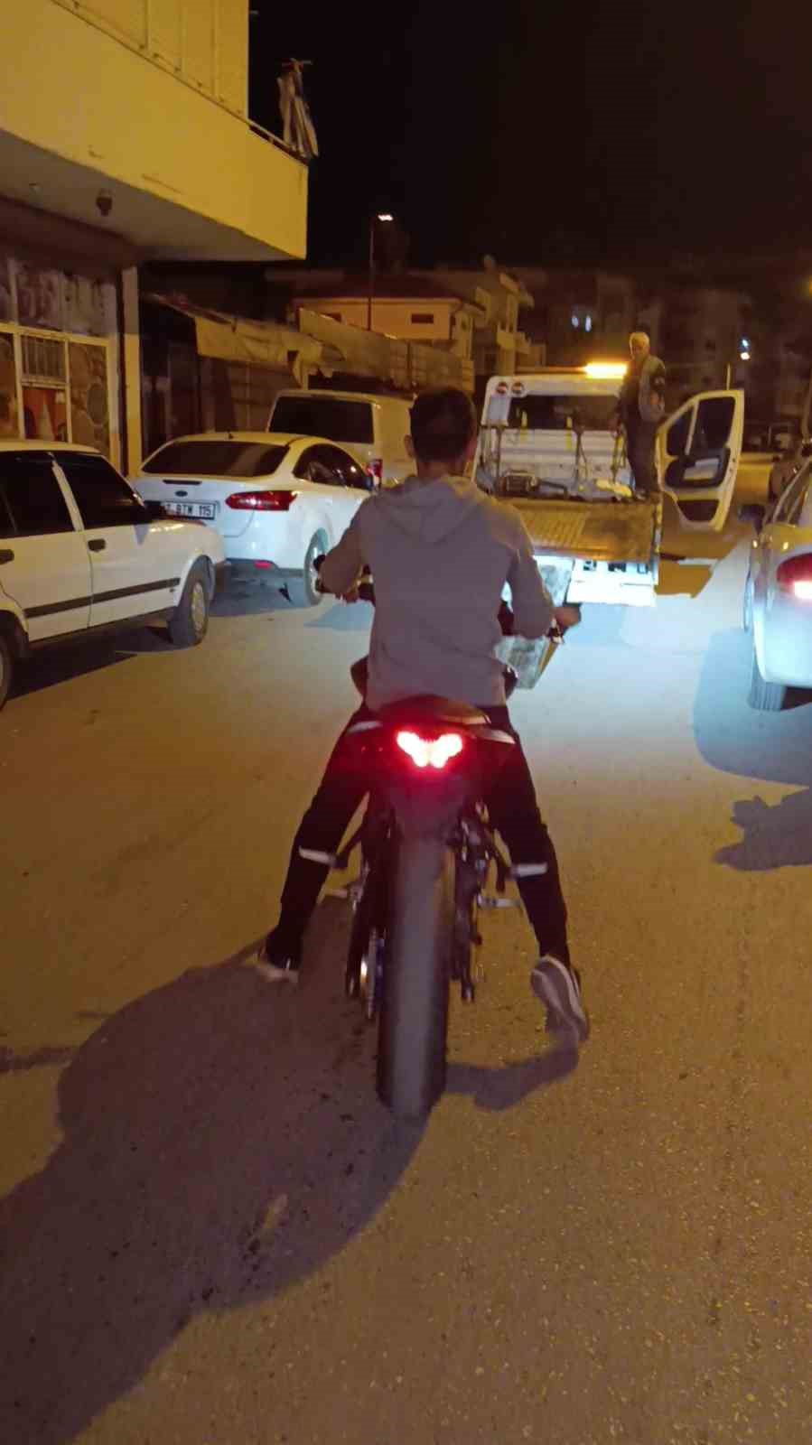 Polisin sözlerine hak veren motosiklet sürücüsü genç, motosikletinin trafikten men edilerek yediemin otoparkına götürülmek üzere çekiciye yüklenmesinin ardından olay yerinden ayrıldı.