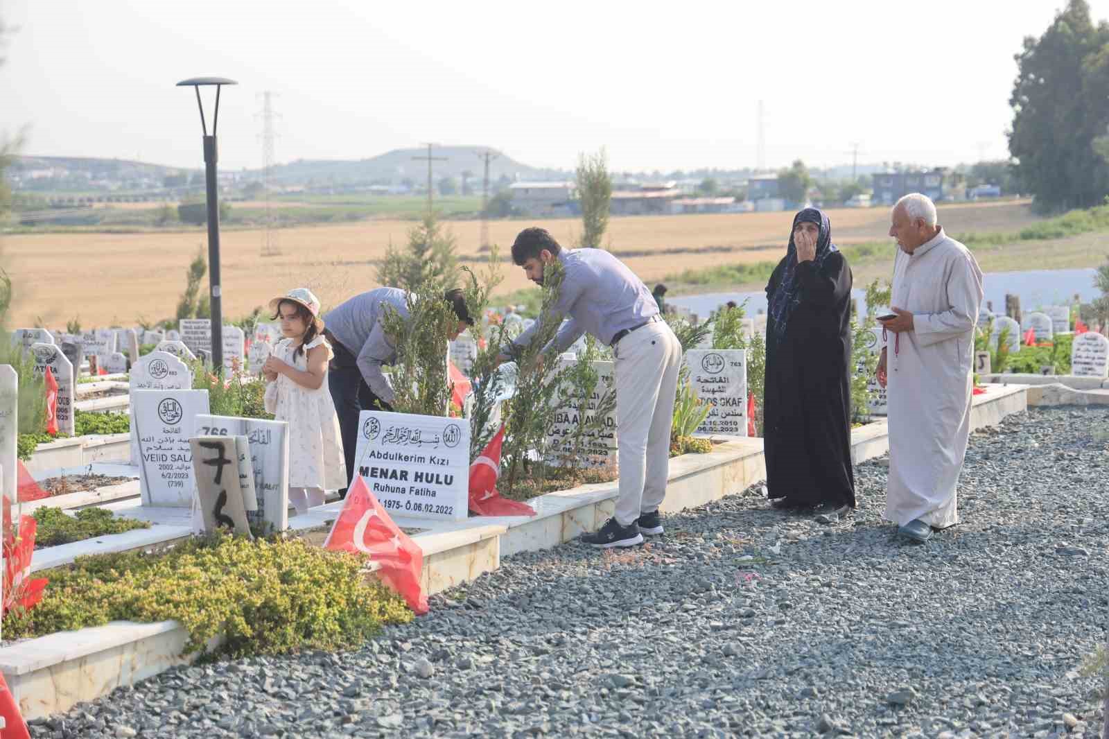 Kahramanmaraş merkezli depremlerde Hatay’da 25 bine yakın insan vefat etmişti. Depremde vefat eden vatandaşlar için Antakya ilçesi Narlıca Mahallesi’nde deprem mezarlığı kurulmuştu. Her bayram öncesi olduğu gibi bu Kurban Bayramı’nda da depremde yakınını kaybeden vatandaşlar mezarlığı ziyaret ettiler. Arefe gününden başlayan ziyaretlerde vatandaşlar duygu dolu anlar yaşadılar. Hatay Büyükşehir Belediyesi de mezarlığı bayraklarla donatarak, ziyaret gerçekleştiren vatandaşlara dikmeleri için çiçek dağıttı. Afetzede vatandaşlar, arefe günü ve bayram boyunca mezarlıklara ulaşımlarını Hatay Büyükşehir Belediyesi tarafından tahsis edilen ücretsiz servis araçlarıyla sağlayabilecekler.
