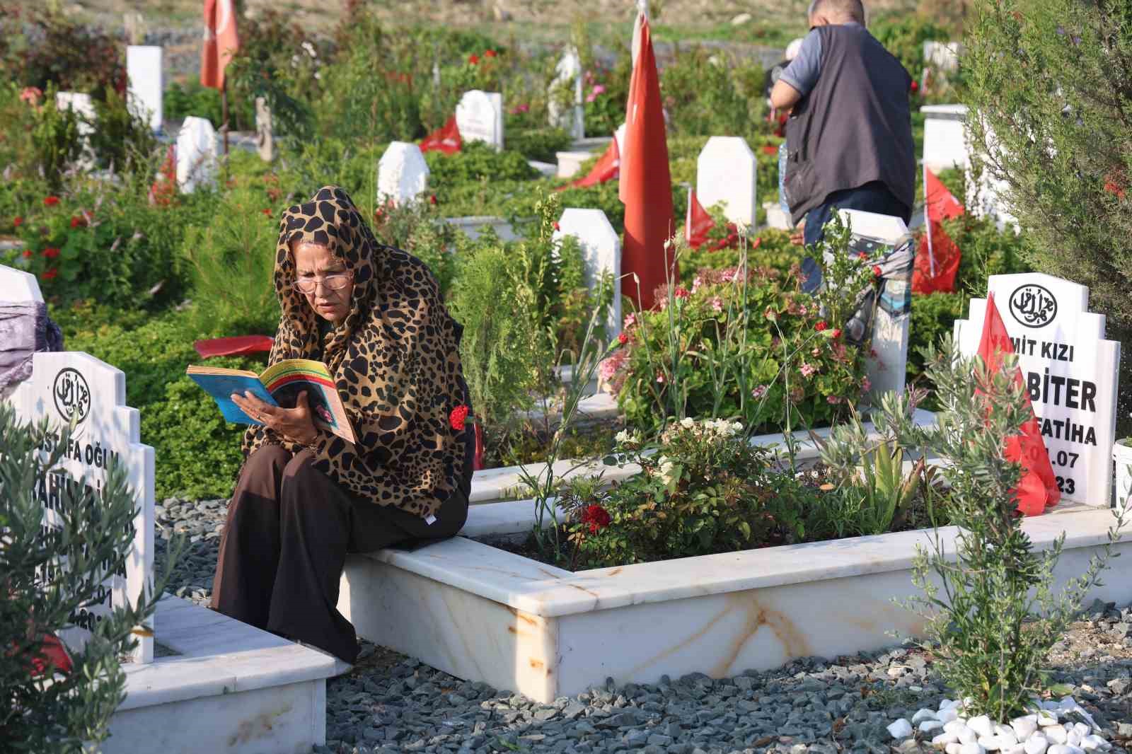 Hatay’ın merkez Antakya ilçesinde hüzünlü geçen Kurban Bayramı’nda depremde hayatını kaybedenlerin mezarlarına karanfil bırakılarak, dualar edildi.
