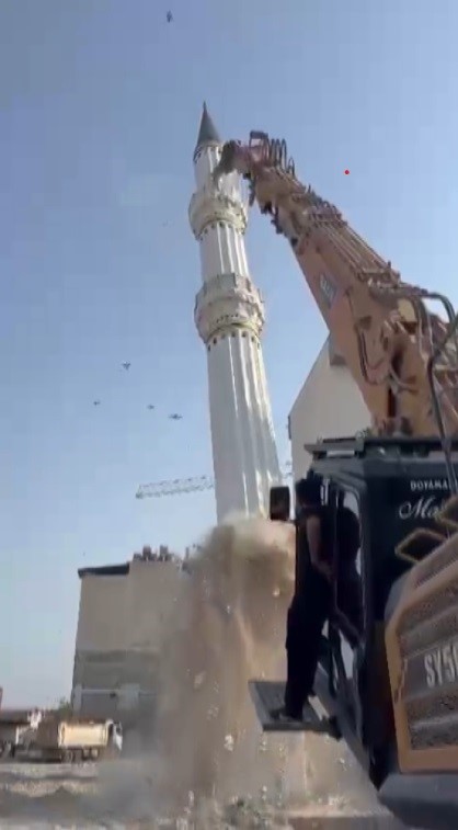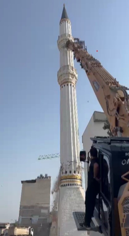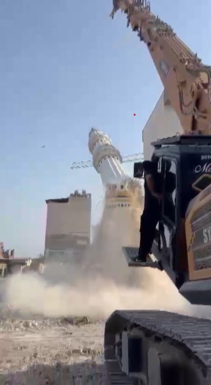 Kahramanmaraş merkezli depremlerde en çok yıkımın olduğu Hatay’da, binlerce bina yerle bir olurken binlerce bina da ağır hasar aldı. Asrın felaketi olan depremde, birçok tarihi yapının yanı sıra camiler de ağır hasar aldı. Kırıkhan ilçesi Cumhuriyet Mahallesi’nde bulunan bir caminin minaresi, depremde hasar aldığı için yıkılma kararı alındı. İş makinesinin darbesiyle cami minaresi yerle bir oldu. Cami minaresinin yıkılma anı saniye saniye kameraya yansıdı.