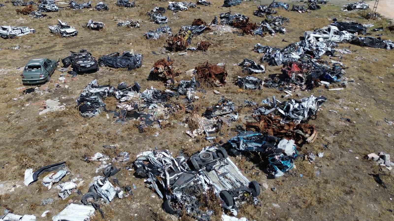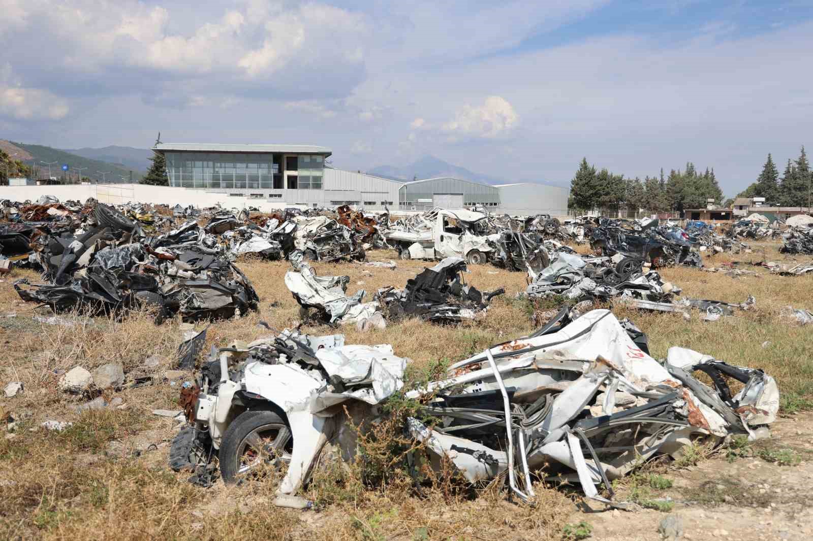 Depremin vurduğu Hatay’da enkazdan çıkan araçların büyük çoğunluğu hak sahipleri tarafından teslim alındı. Araç mezarlığında geriye kalan araçlar ise görenlere asrın felaketini hatırlatıyor.