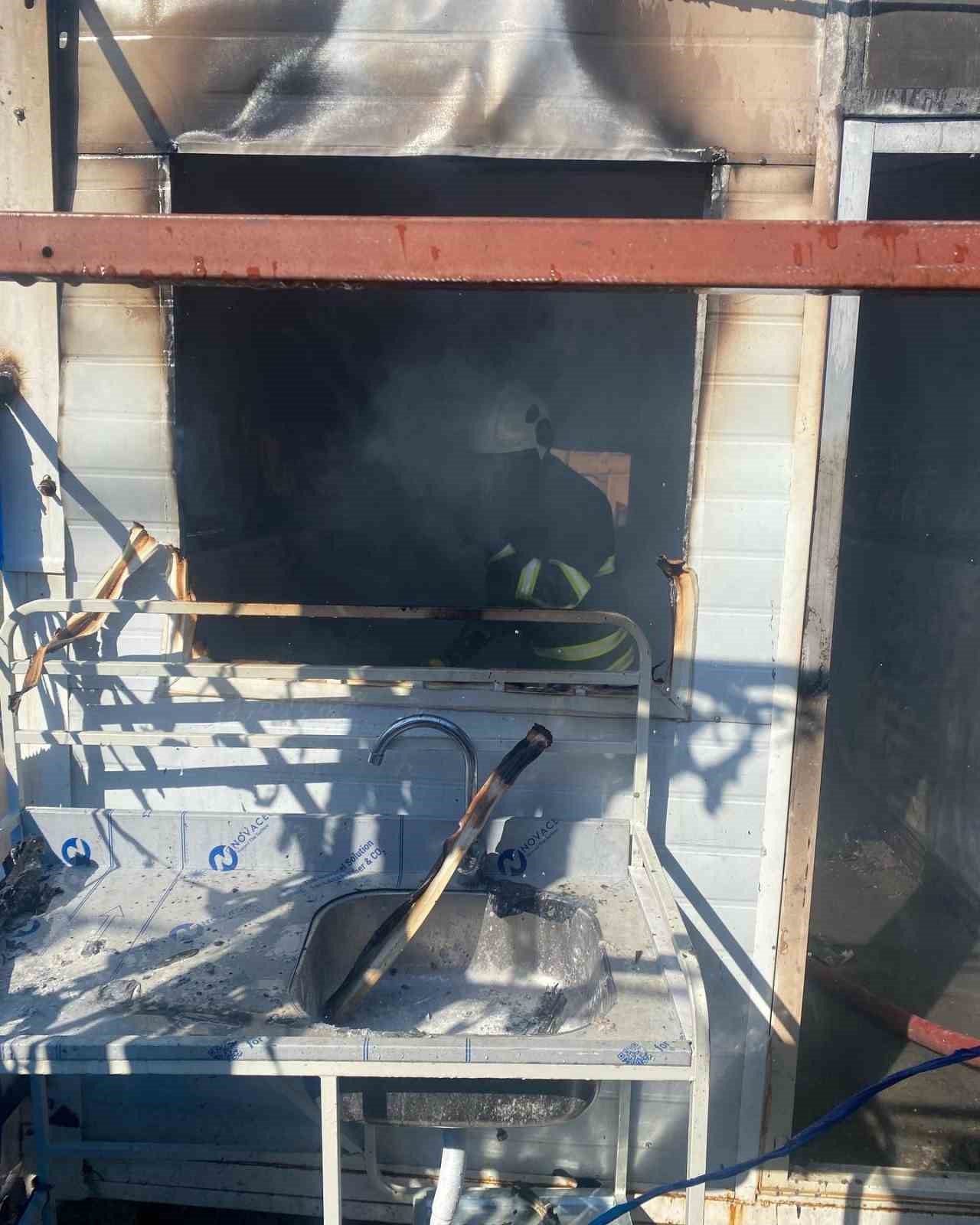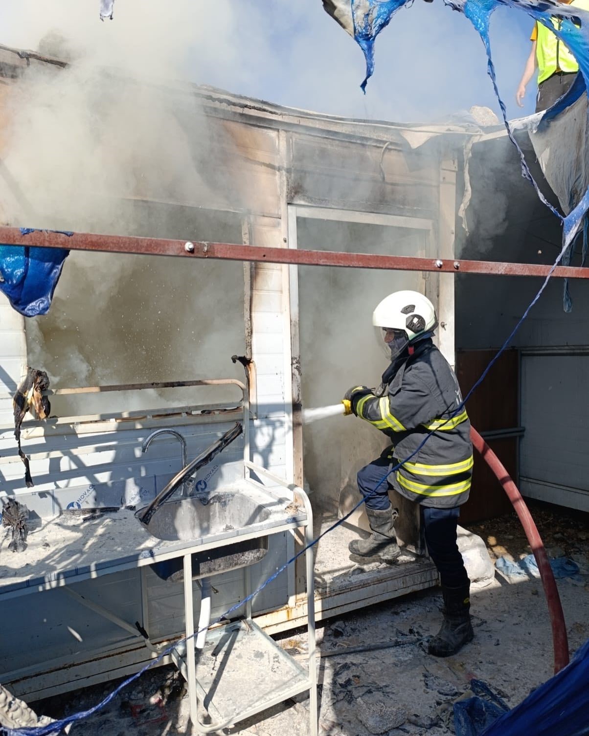 Hatay’da depremzede ailenin yaşadığı konteyner yanarak kullanılmaz hale geldi.