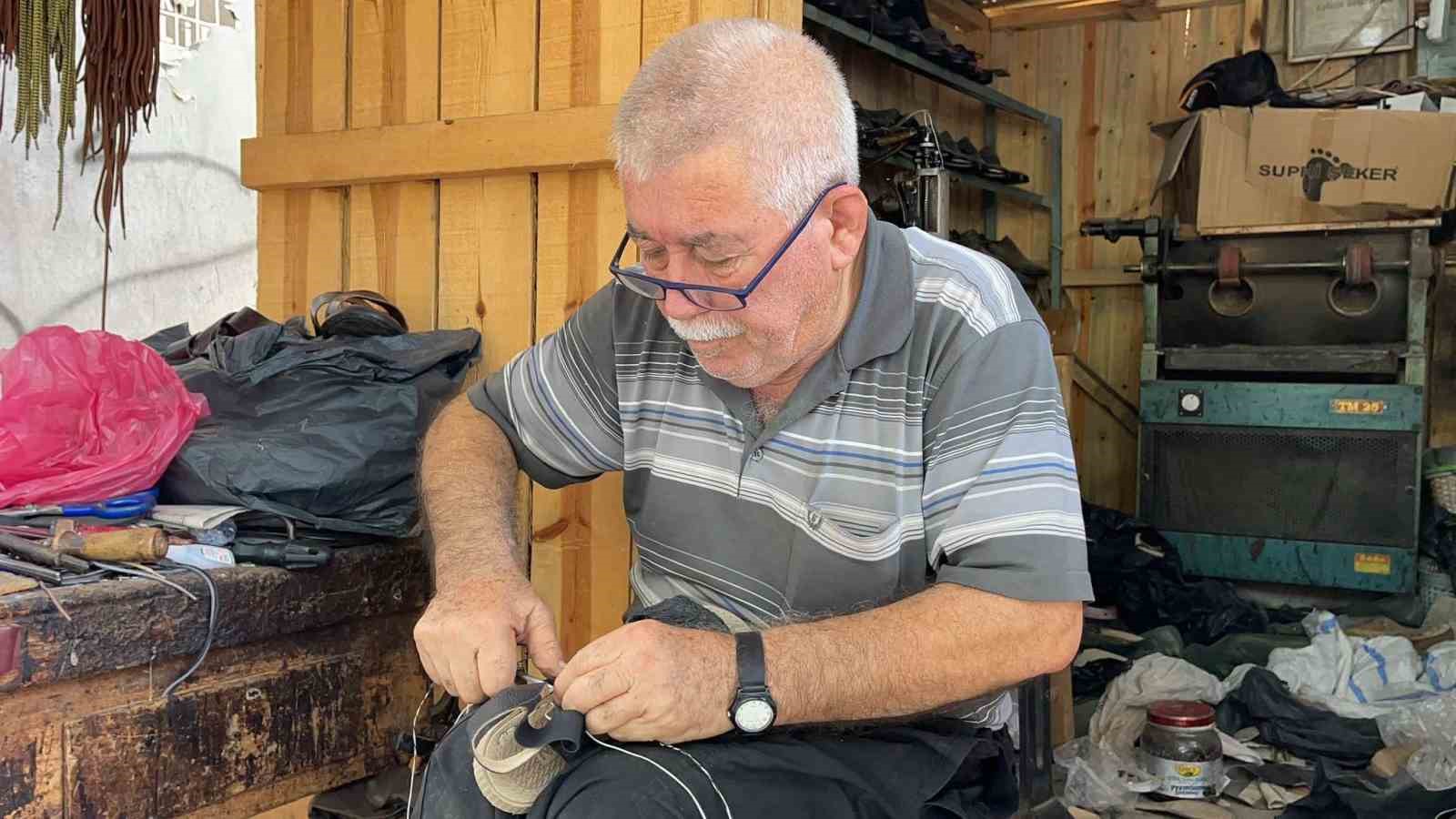 Depremde iş yerinin yıkıldığını, kiraların da yüksek olmasından dolayı kendi imkanlarıyla ahşap kulübe yaptığını söyleyen Sabri Yıldırım, “İlkokulu bitirdim, 12 yaşından beri bir ustanın yanında çalıştım. Tek ustanın yanında çalıştım orada bu adam hakiki bir çizmeciydi körüklü çizme yapardı. Biz de ondan güzel bir sanat öğrendik. Kalfa olduktan sonra bir dükkan açtım. 54 yıldır aynı dükkanda çalışıyordum. Deprem olduktan sonra buralar yıkılınca bizim dükkan sahiplerimiz, bir baraka koydular ve yüksek bir fiyat istediler. Biz de bunu kaldıramayacağımızı söyledik. Ben geldim, bir baraka yaptım kendi imkanlarımla, 3 metrekare içerisinde ayakkabı yapıyorum, sökük yapıyorum, çanta yapıyorum. Ayakkabıyı sıfırdan kendim yapıyorum. Zaten benden başka da ayakkabı yapan kişi kalmadı. Osmaniye’de son usta benim” dedi.