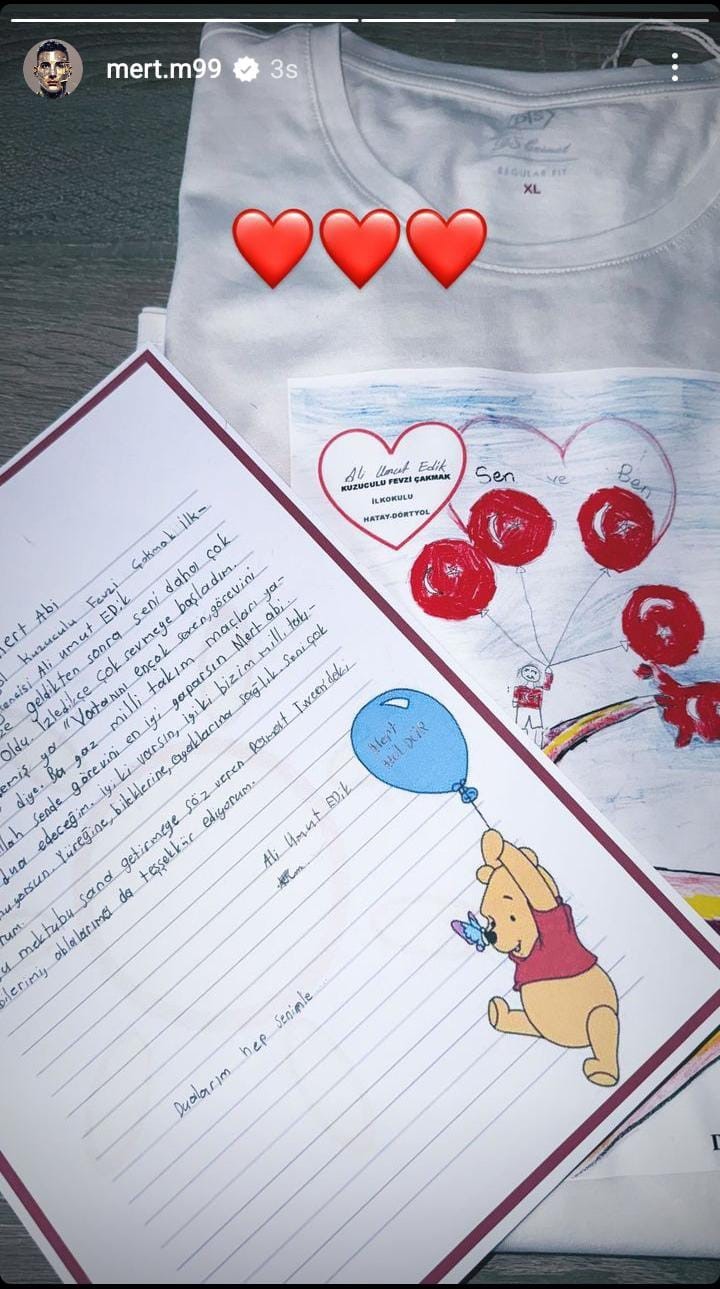 Depremin vurduğu Hatay’da yaşayan öğrenciler, 2024 Avrupa Futbol Şampiyonası’nda (EURO 2024) mücadele eden milli futbolculara mektup gönderdiler. Milli futbolcular, kendilerine gelen mektupları sosyal medya hesapları üzerinden paylaştılar.