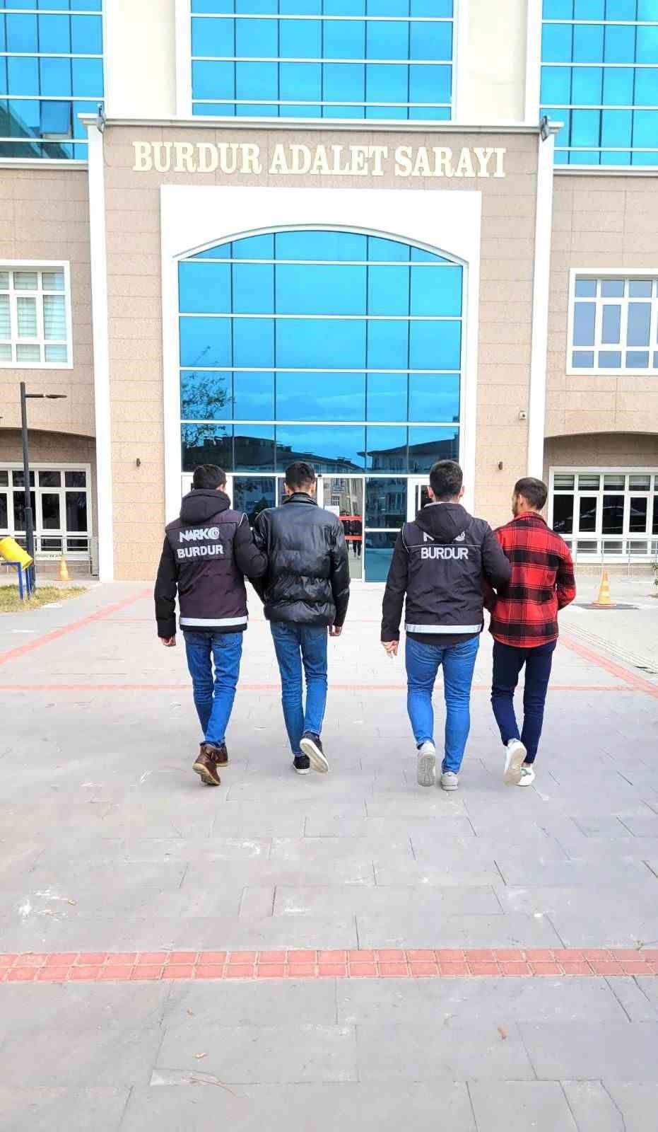 Burdur’da polis ekipleri tarafından durdurulan bir araçta uyuşturucu madde ele geçirilirken, gözaltına alınan 3 şüpheli tutuklanarak cezaevine gönderildi.
