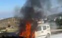Hafif ticari araç alev alev yandı: O anlar kamerada