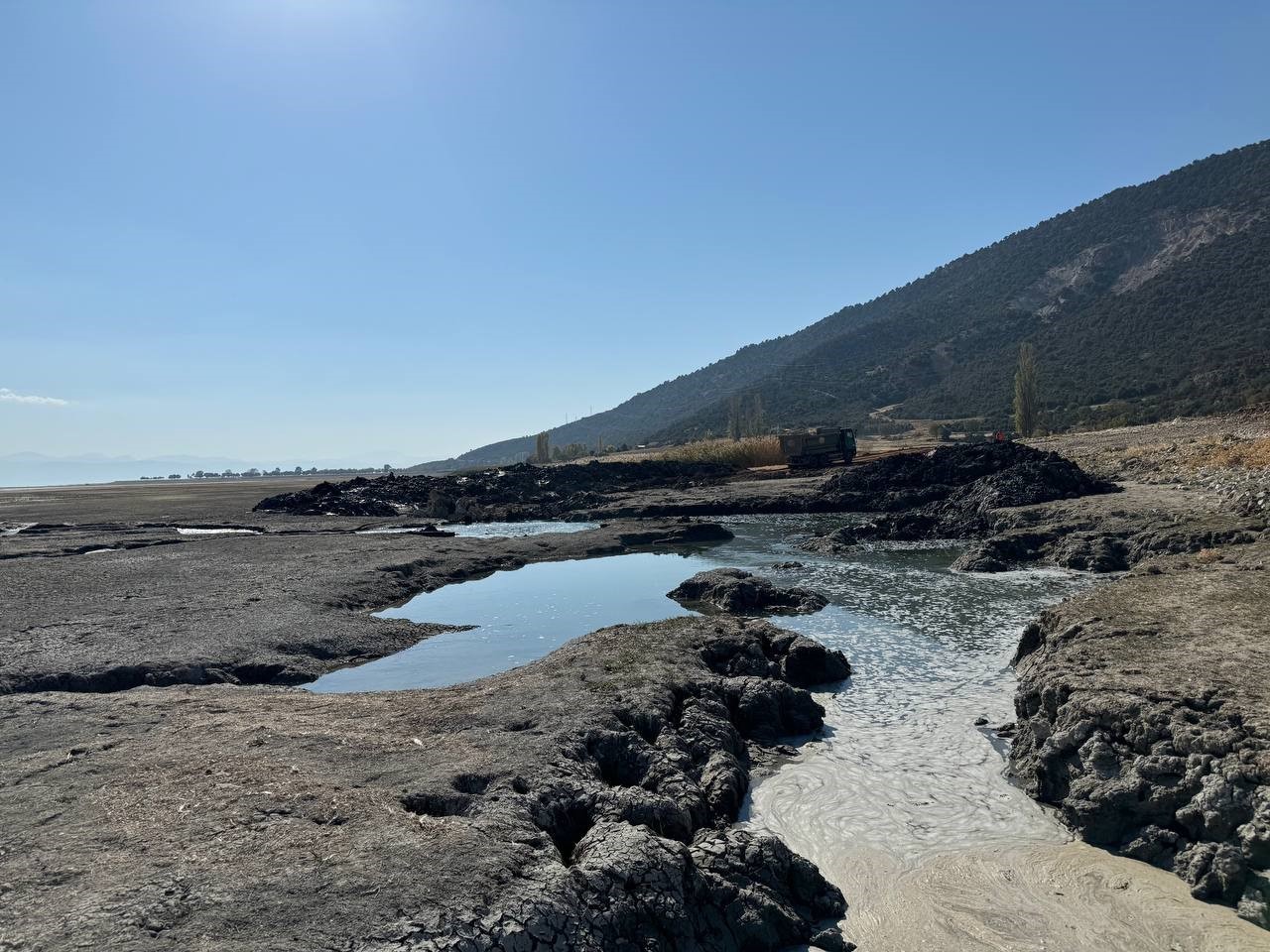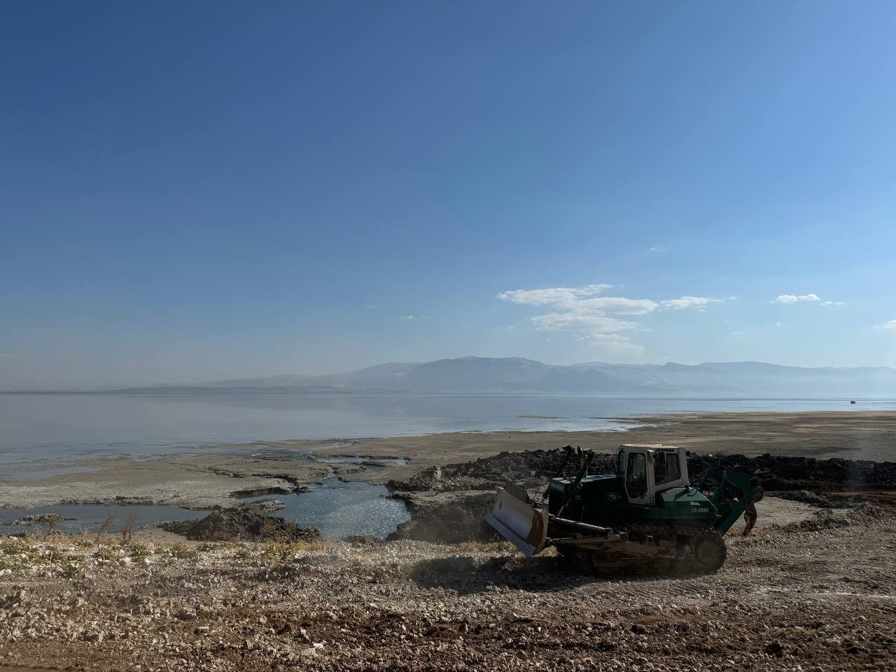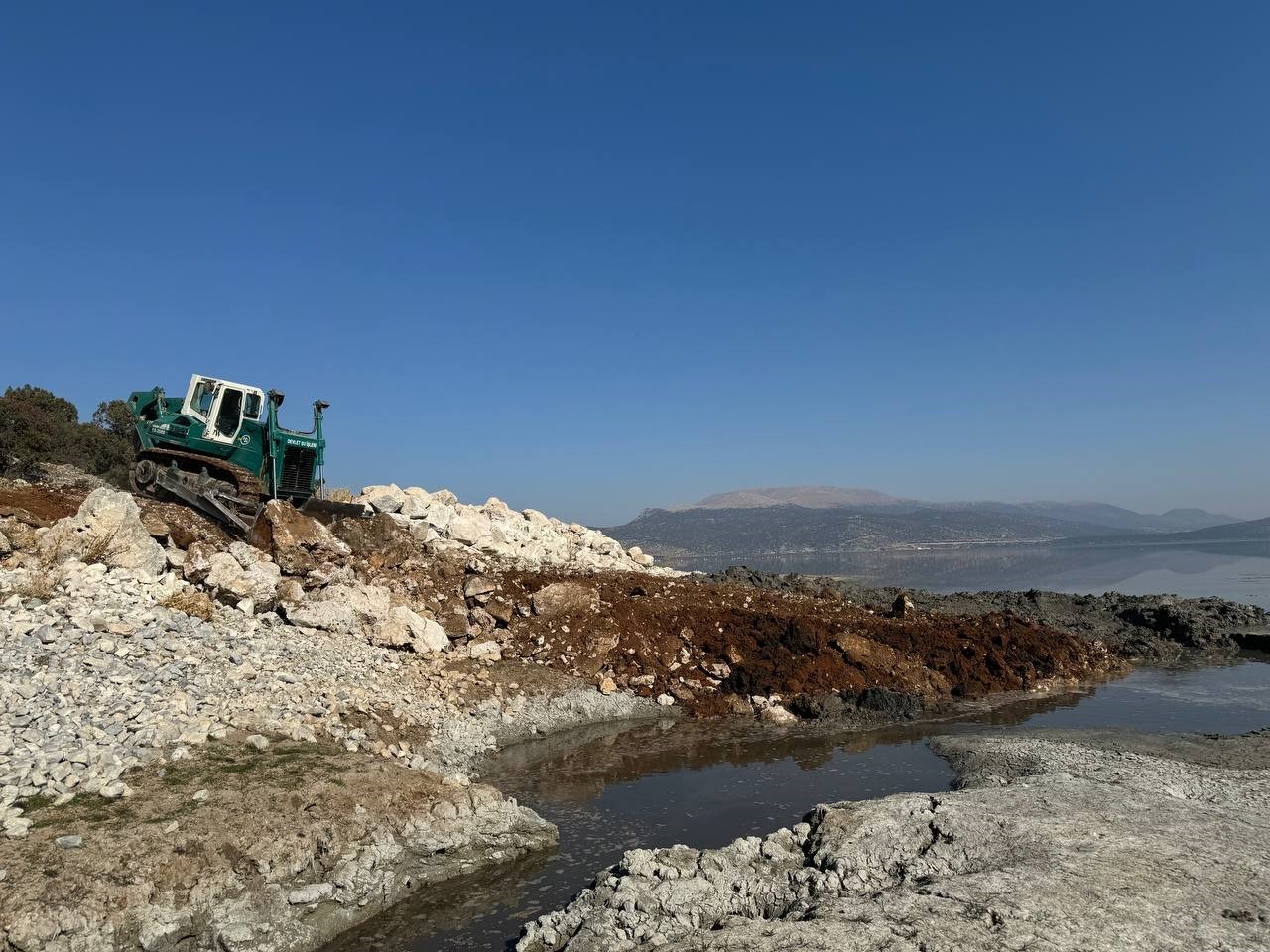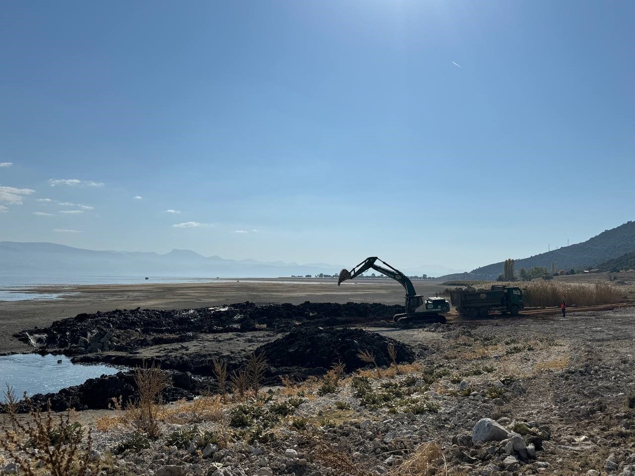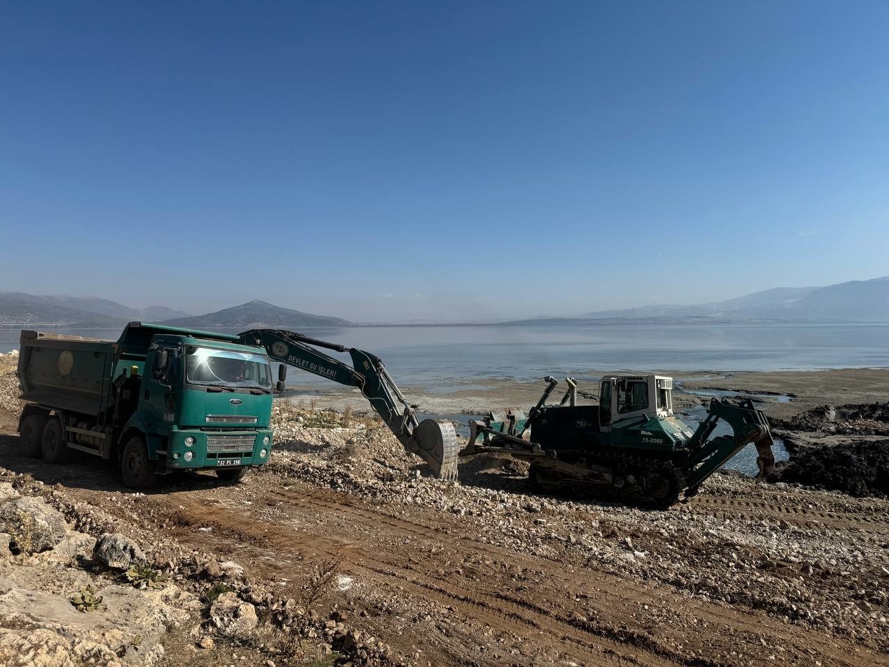 Kuraklıkla mücadele eden Eğirdir Gölü’nde ortaya çıkan düdenler Devlet Su İşleri (DSİ) 18. Bölge Müdürlüğü ekiplerince kapatılıyor.