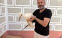 Cami kubbesinde mahsur kalan yaralı leyleğe kurtarma operasyonu