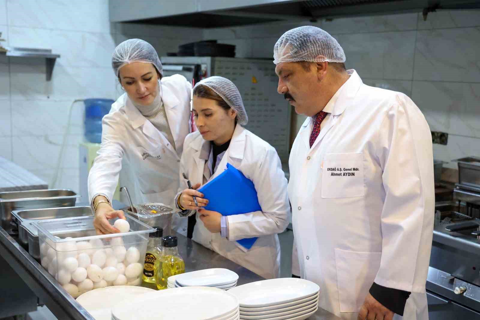 EKDAĞ A.Ş’de çalışan Gıda Mühendisi Şahver İnal, “Tesislerimize düzenli olarak denetimler gerçekleştiriyoruz. Amacımız, misafirlerimize sağlıklı ve kaliteli ürünlerle buluşturulmasını kontrol etmek. Burada da ham maddeden başlayarak, malzeme kabulü, ürünlerin ve depoların kontroller yapılıyor. Ürünlerin ilk aşamasından en son tüketiciye ulaşana kadarki tüm süreçleri kontrol ediyoruz” ifadelerini kullandı.