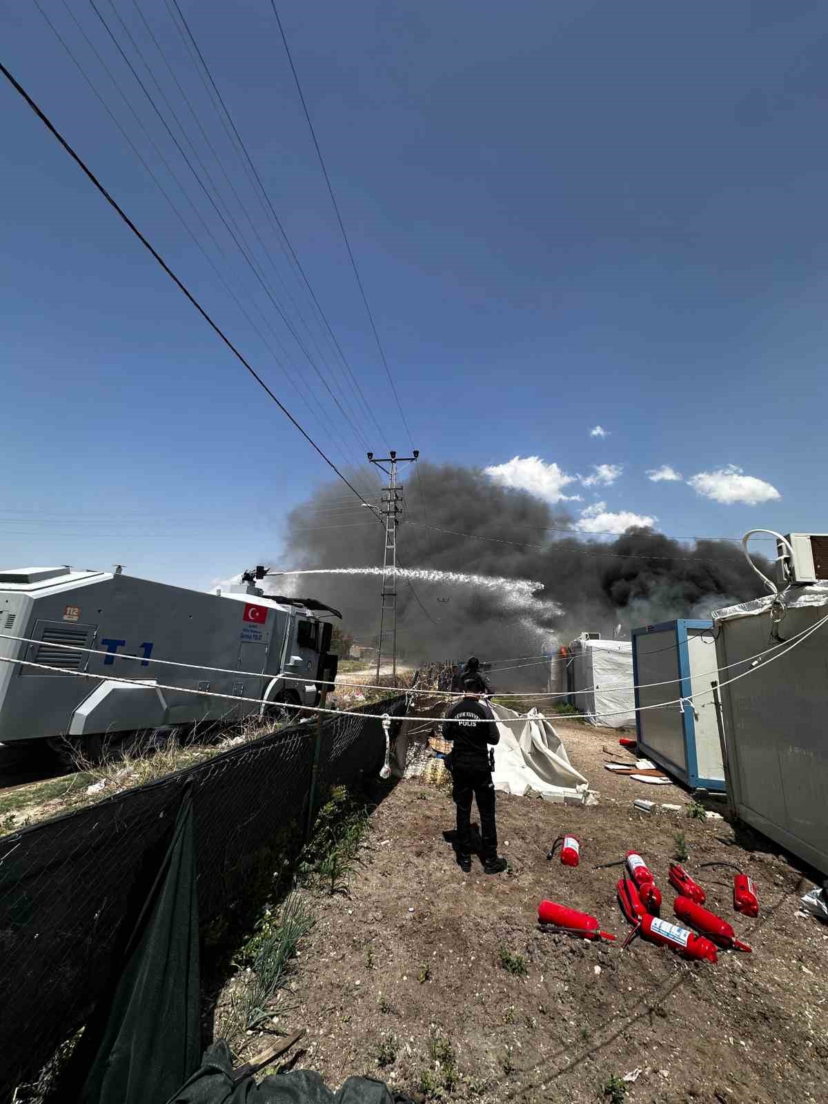Kahramanmaraş’ın Elbistan ilçesindeki konteyner kentte çıkan yangın ekiplerin müdahalesiyle söndürüldü.