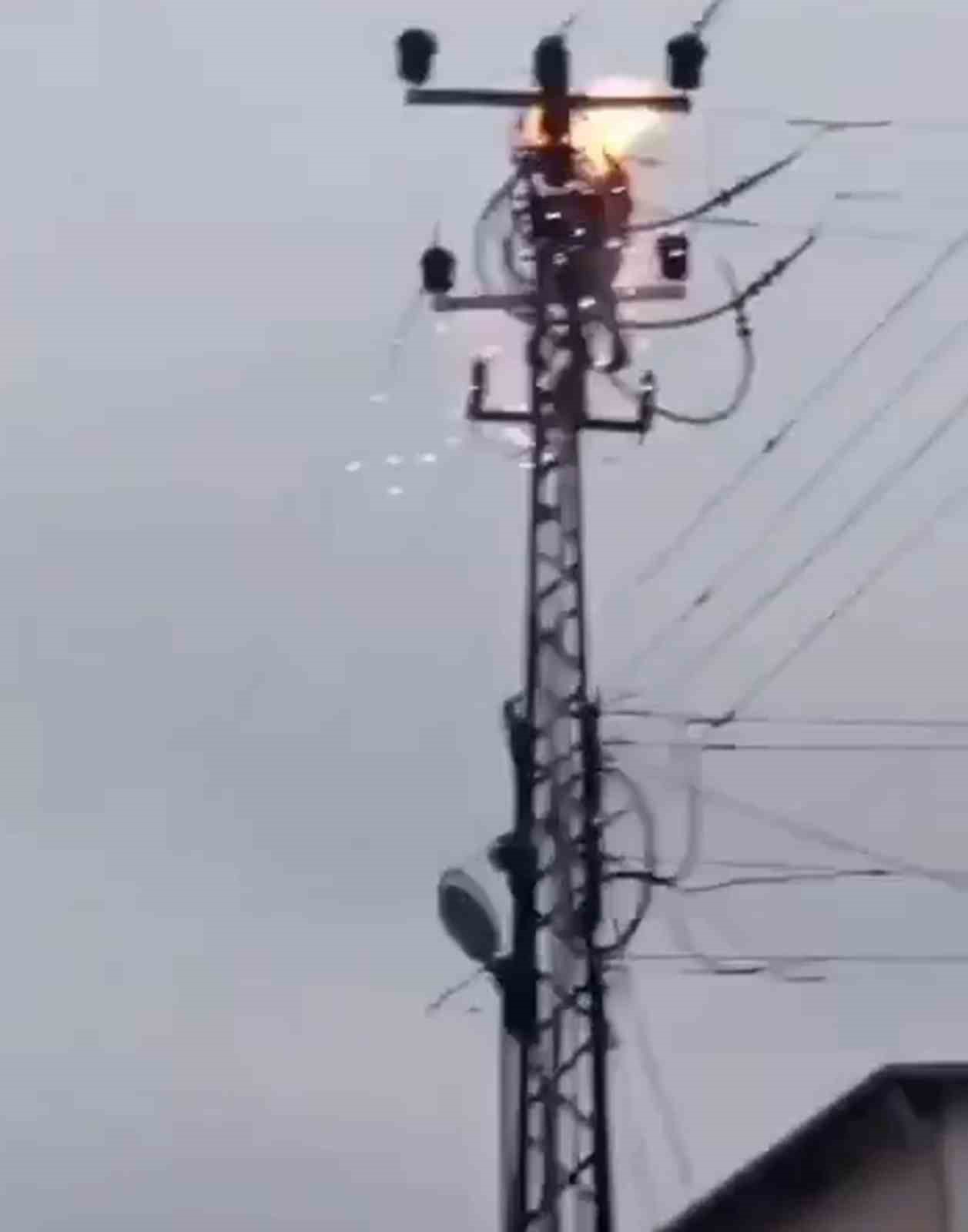 Hatay’ın Kumlu ilçesinde akli dengesi yerinde olmayan bir kişi, elektrik direğine çıkarak akıma kapıldı o anlarsa cep telefonu kamerasına yansıdı.