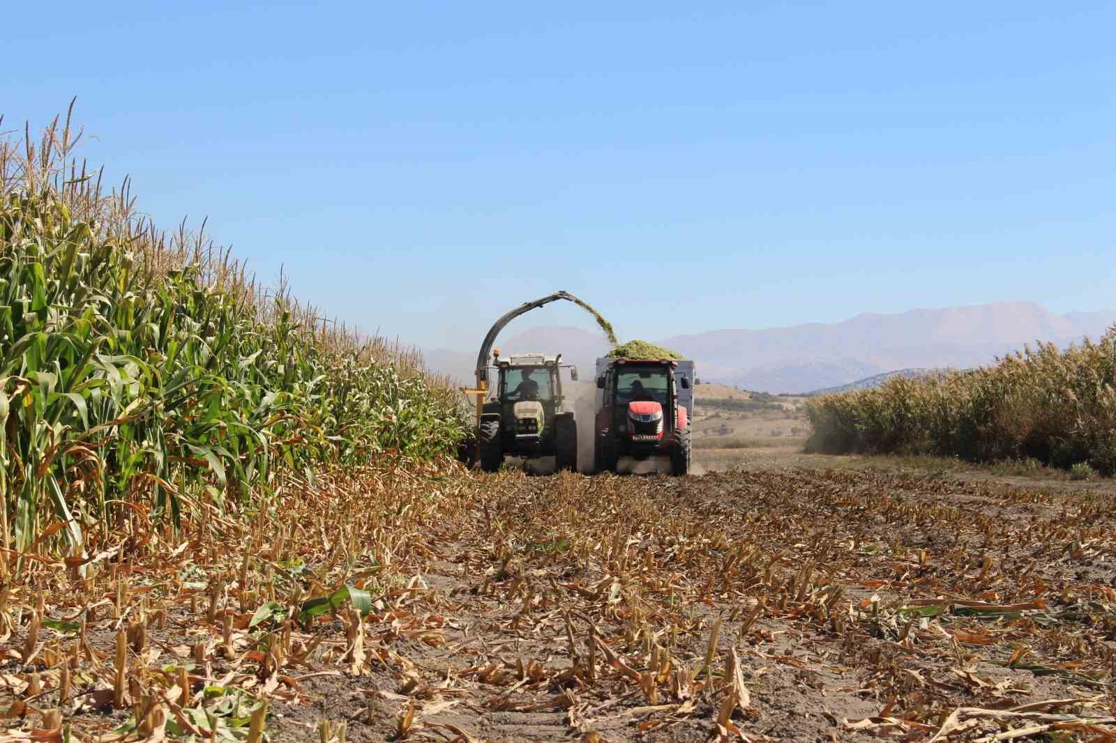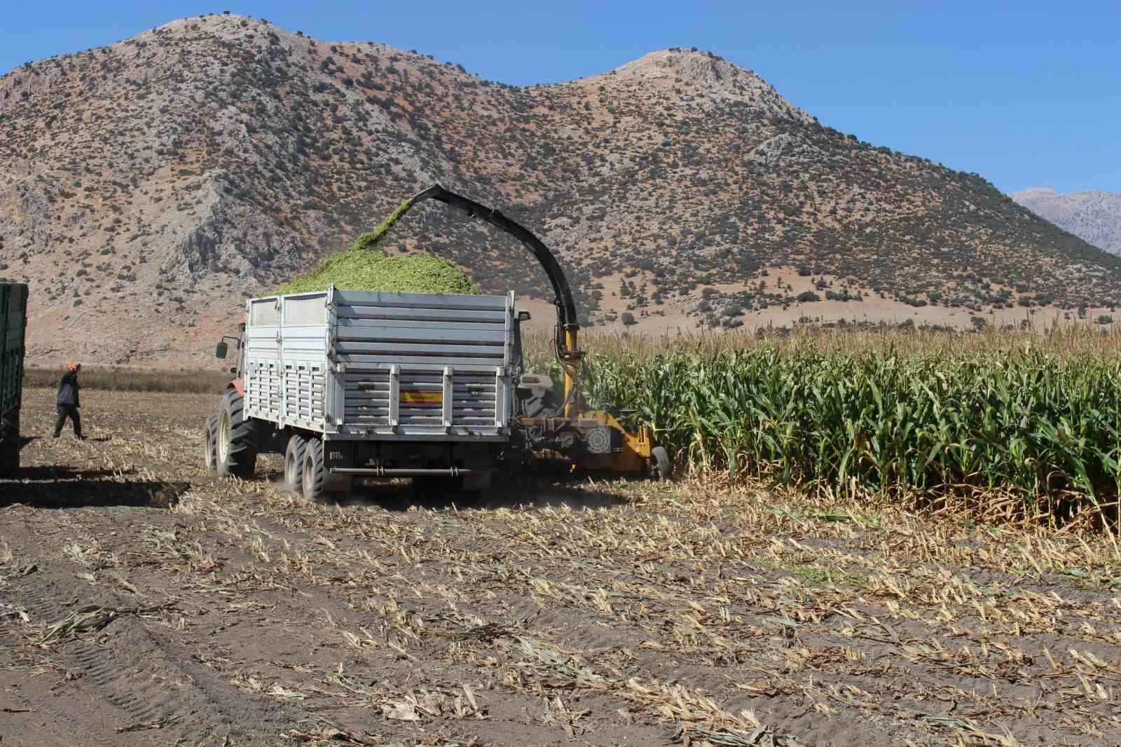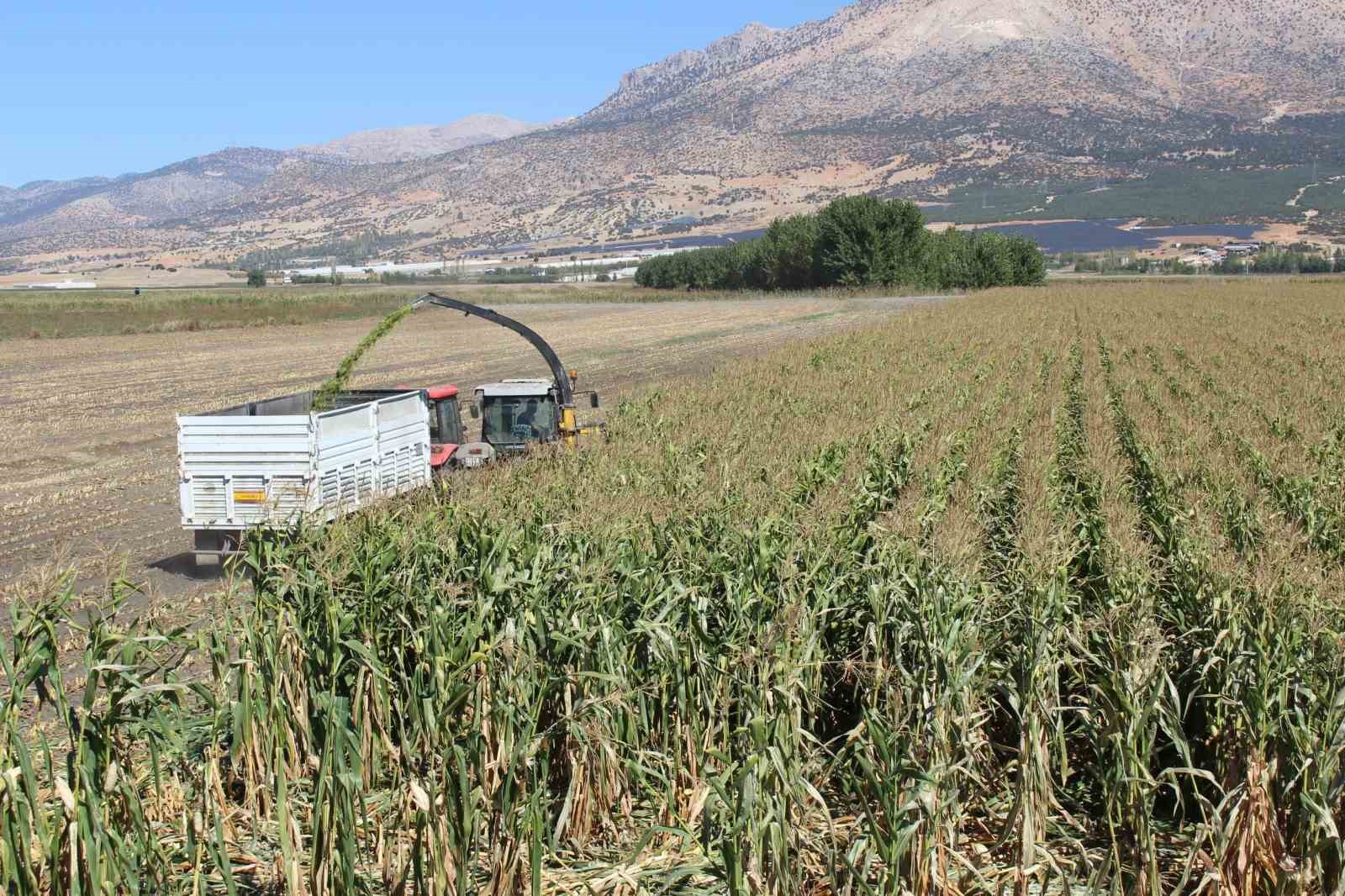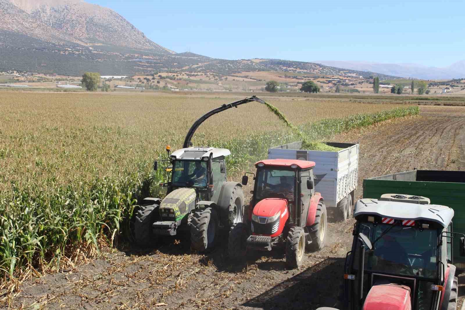 Antalya’nın Elmalı ilçesinde 60 dönümlük alanda ekilen silajlık mısırlar hasat edildi.