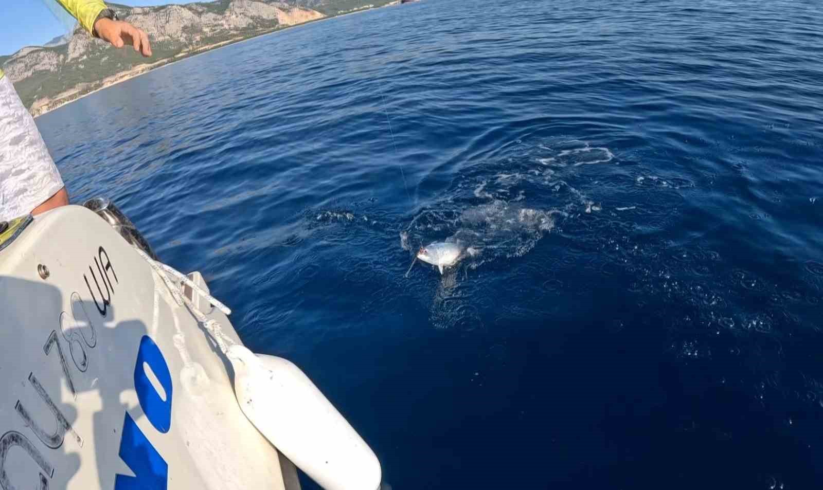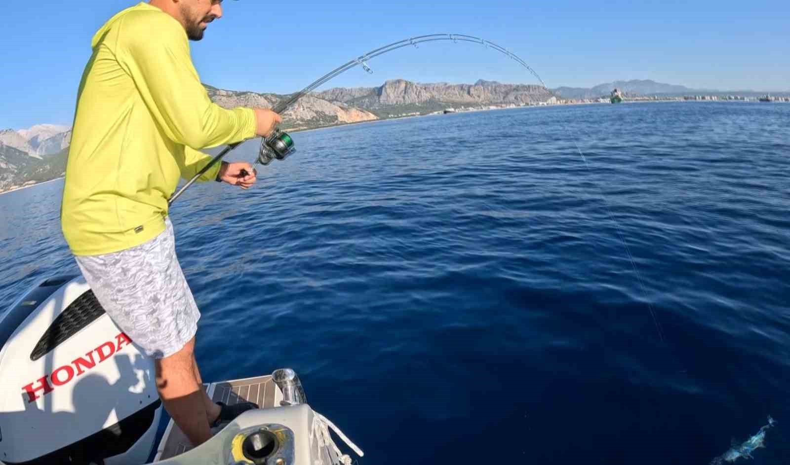 Antalya’da profesyonel olta balıkçılığı ve danışmalığı yapan Savaş Dursun, eşi Didem Dursun ile birlikte tekneyle Konyaaltı açıklar balık için açıldı. Dursun birkaç tane büyük kuzu balığı tuttuktan sonra oltasına yazılı orkinos takıldı. Balığı teknesine misinayla çekmeye başlayan Dursun, arkasından başka bir balığın daha geldiğini fark etti.