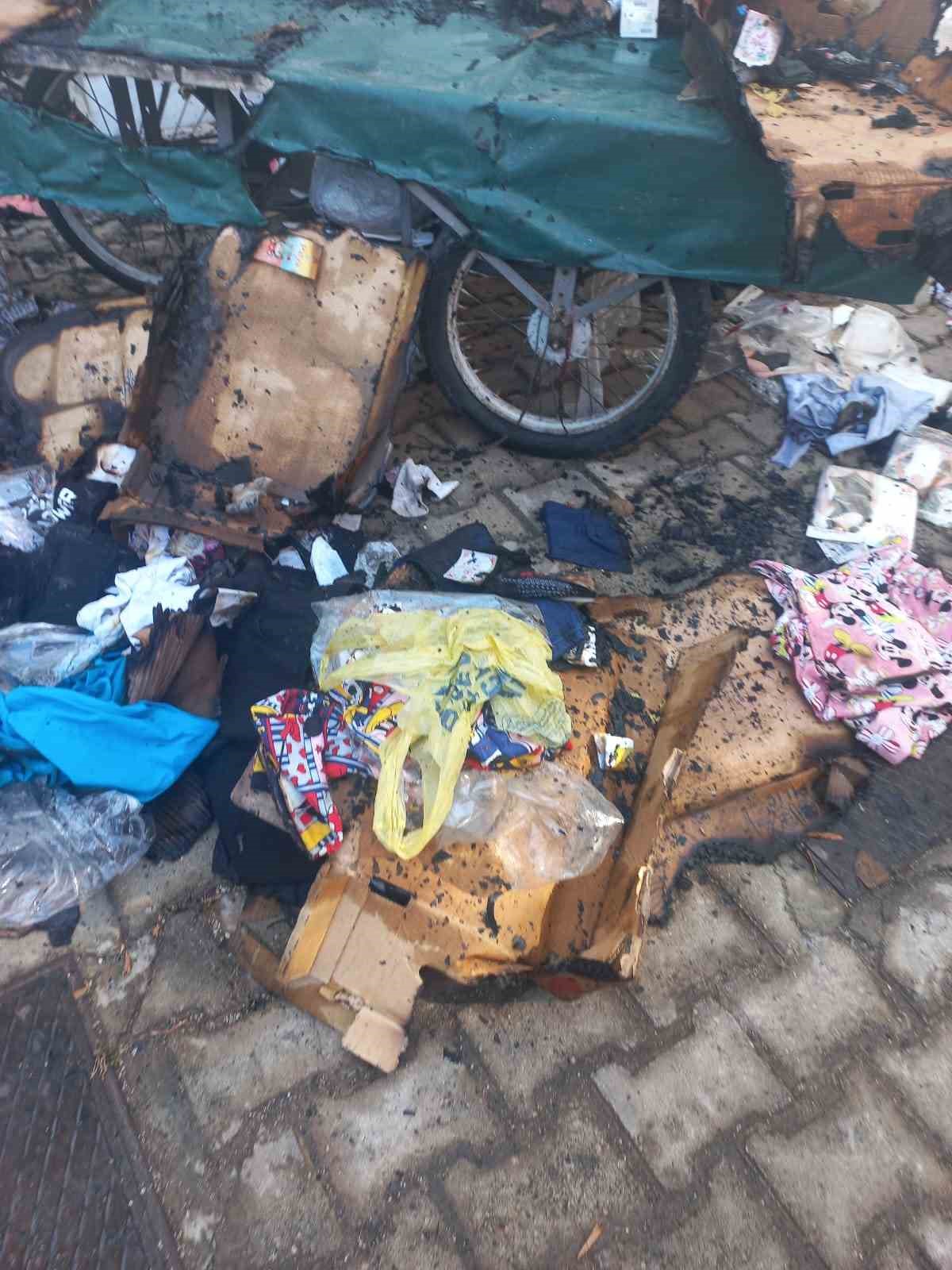 Olay, Kepez ilçesi Esentepe Mahallesi’nde sabah saatlerinde meydana geldi. Mehmet Sönmez’in (46) evinin önüne park ettiği el arabasındaki tekstil ürünleri henüz belirlenemeyen bir nedenle yanmaya başladı. Yangını fark eden apartman sakinleri, saat 07.15 sıralarında kendi imkânlarıyla alevlere müdahale etti. Ancak giysilerden ve karton kutulardan oluşan malzemenin büyük bölümü kısa sürede küle döndü. Yangının ardından apartman duvarlarında yoğun is tabakası oluşurken, ürünlerin yer aldığı el arabası neredeyse tamamen yandı. Apartman sakinlerinin ihbarı üzerine olay yerine itfaiye ve polis ekipleri sevk edildi.