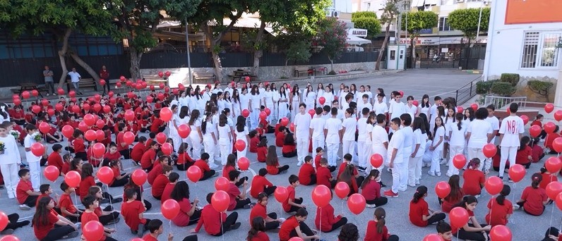 Kutlamaya katılan 758 tane ortaokul öğrencisi kareografi bitiminde yanlarında getirdikleri balonları gökyüzüne bıraktılar.
