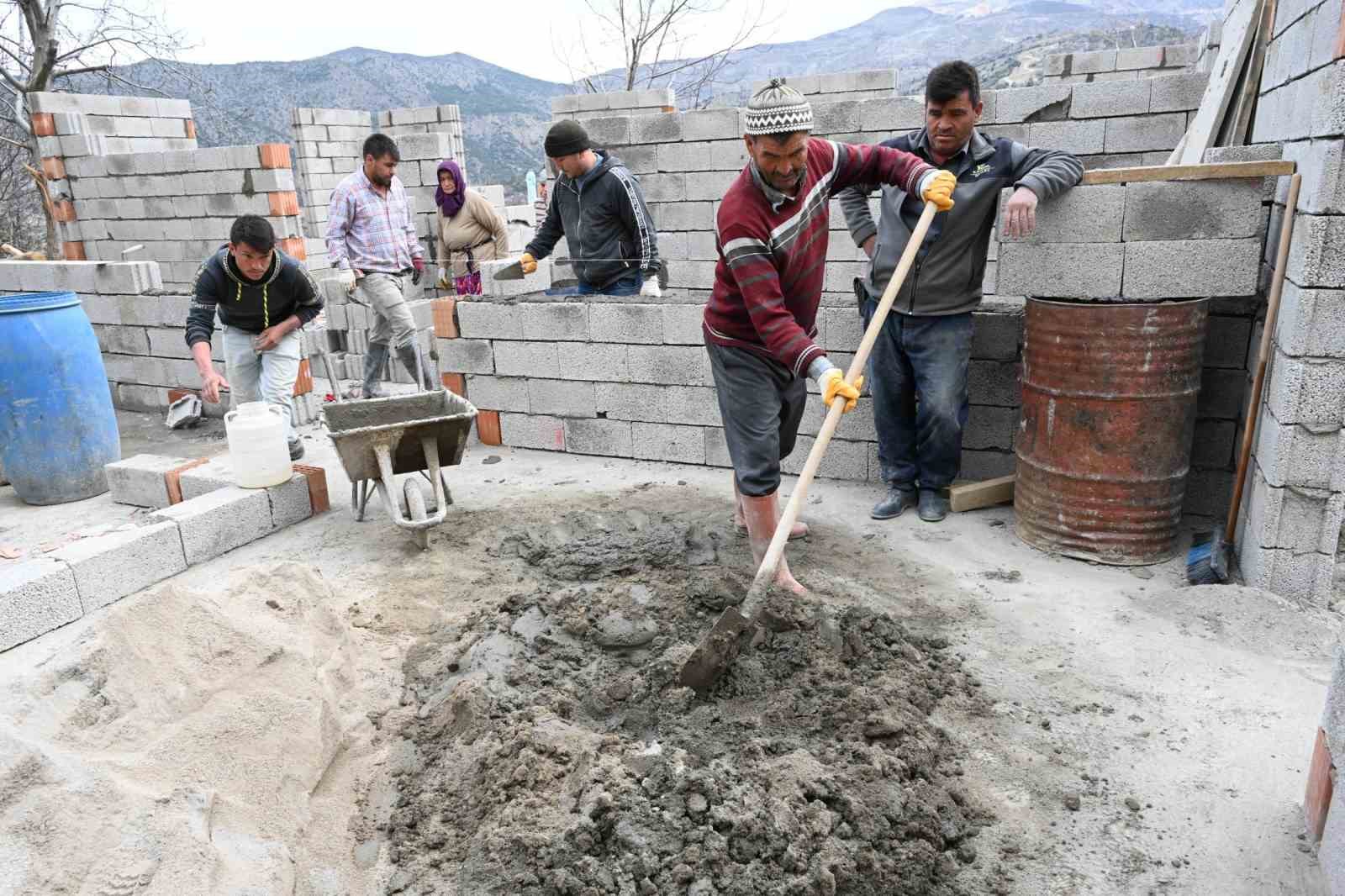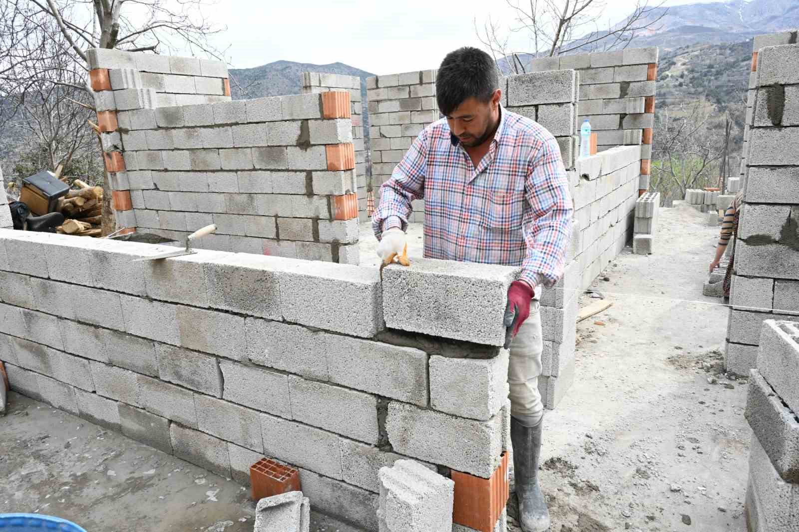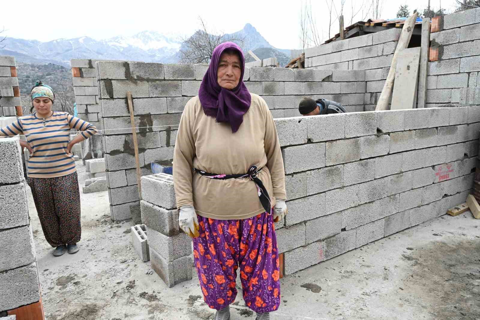 Fatma Sel, eski kerpiç evinin duvarlarının göçtüğünü, tadilatının mümkün olmaması dolayısıyla tamamen yıkıldığını söyledi. Yeni ev yapımı için Belediye Başkanı Şükrü Başdeğirmen’in briket ve malzeme desteğinde bulunduğunu dile getiren Sel, “Başkanımızdan Allah razı olsun, ne istesek veriyor. Kardeşlerimle yeni evi yapıyoruz” dedi.