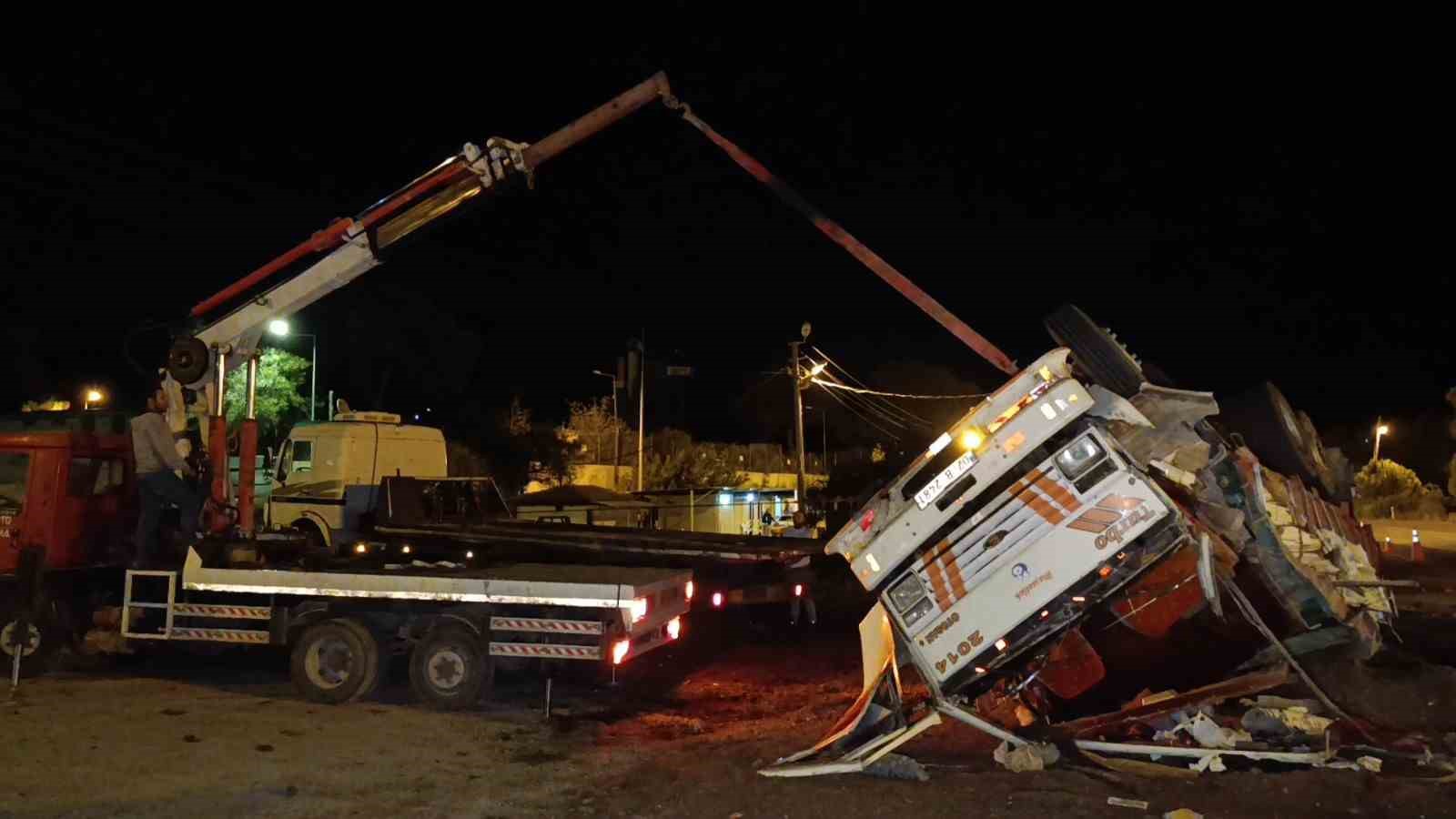 Ters dönen araçta çıkan yangın kontrol noktasında görevli personel ve vatandaşların müdahalesiyle söndürüldü. Araçtan çıkarılan kamyon sürücüsü 112 sağlık ekibinin olay yerindeki müdahalesinin ardından ambulansla hastaneye kaldırıldı. Kamyonun yolun sağ şeridinde ters dönmesi ve yola gübre dökülmesi nedeniyle yolda trafik uzun süre tek şeritten kontrollü olarak sağlandı. Kamyonun vinçle bulunduğu kaldırılarak yolun temizlenmesinin ardından trafik akışı normale döndü.