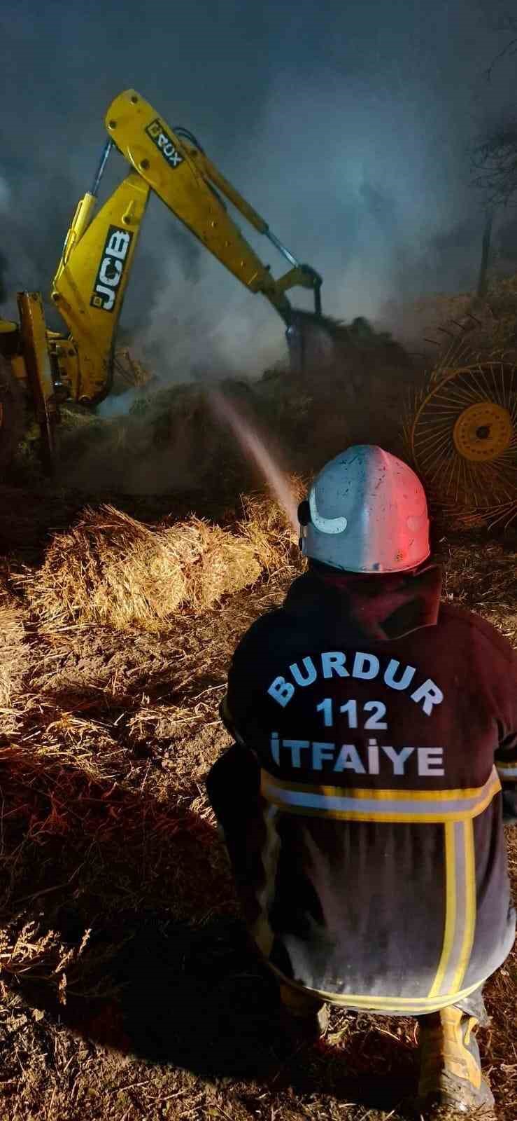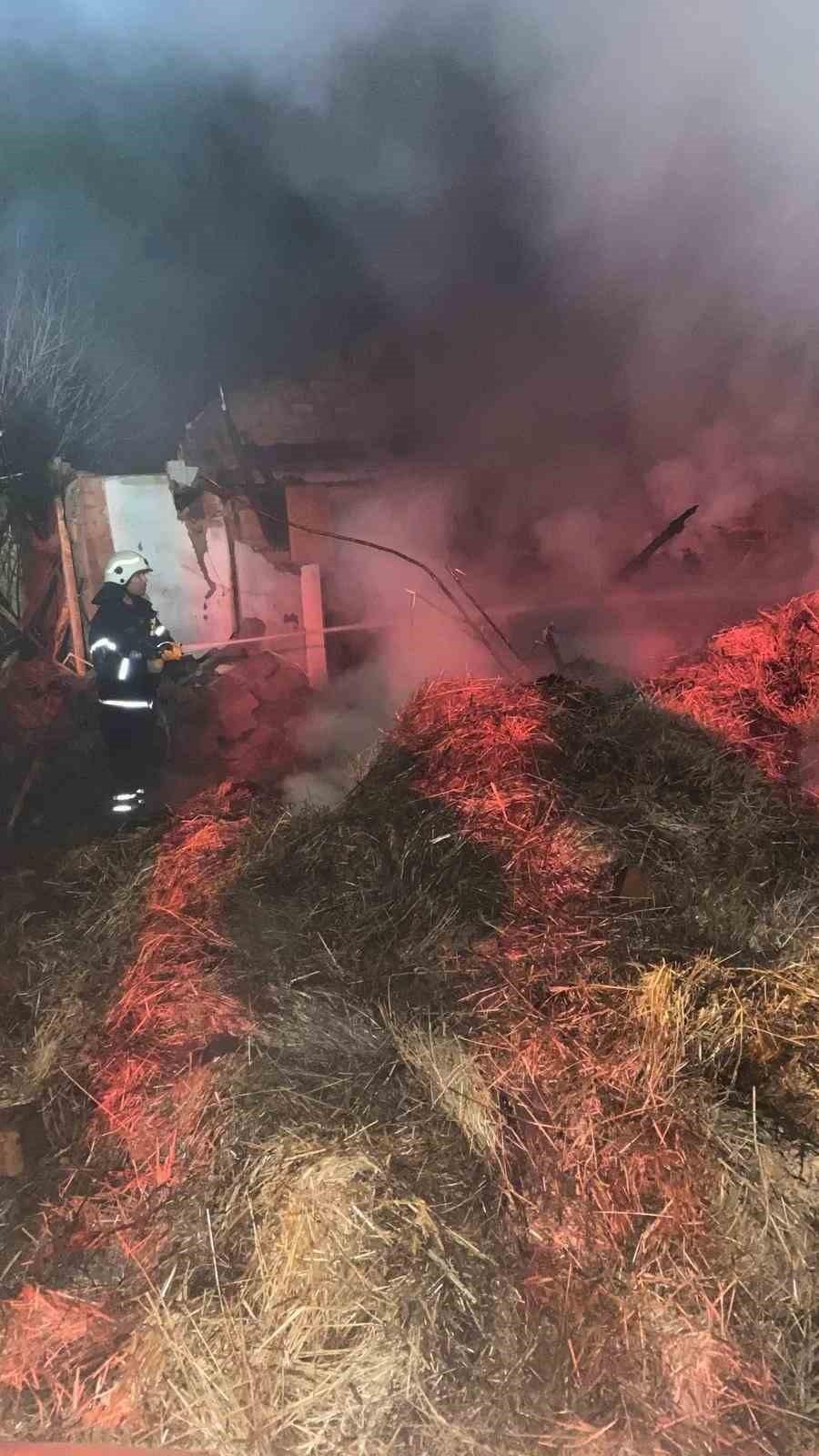 Burdur’da gece saatlerinde ahırda çıkan yangında 500 adet saman balyası yanarken 6 buzağı ise telef oldu.