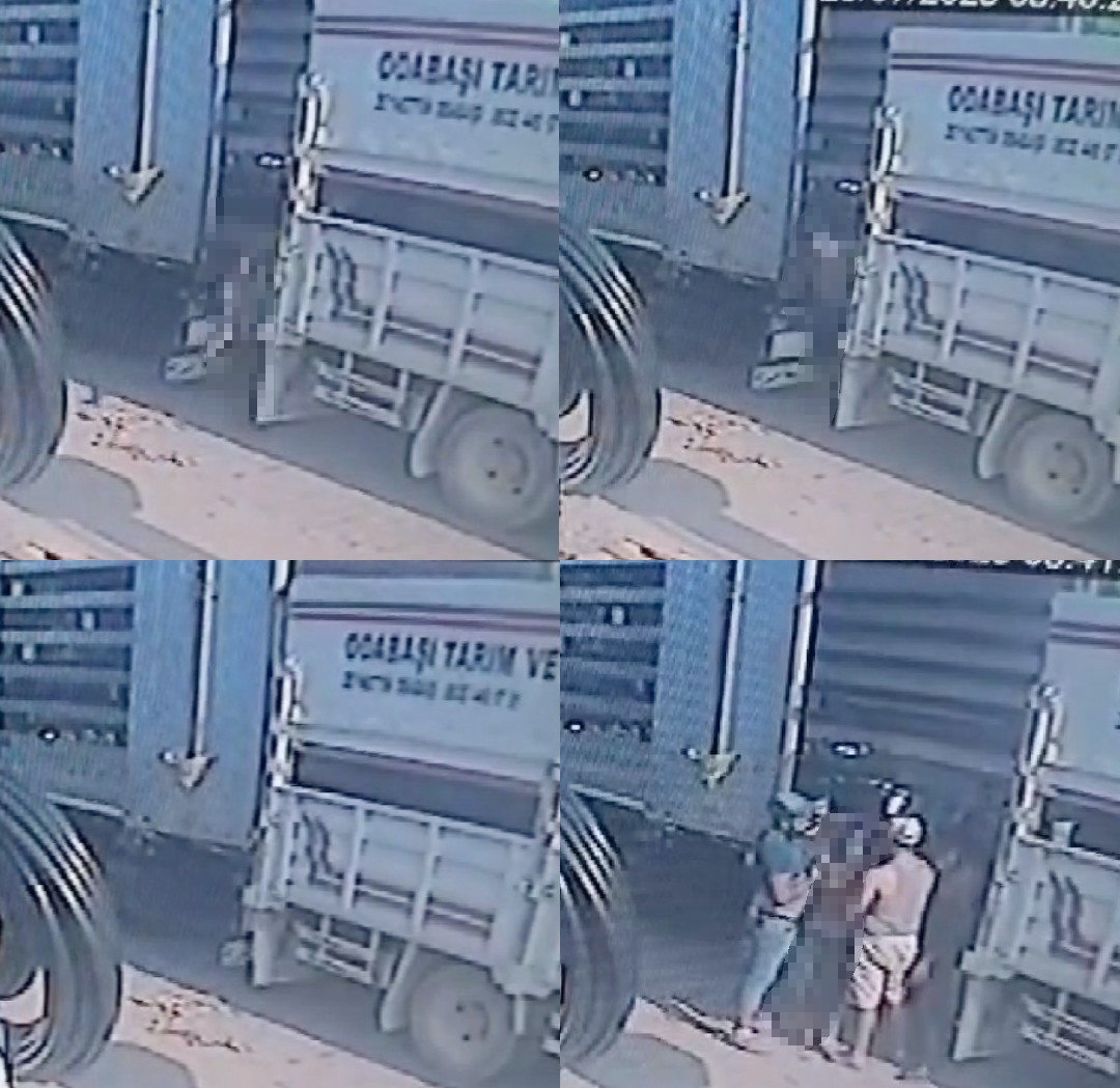 Olay, Mersin’in Silifke ilçesi Atayurt Mahallesi’nde meydana geldi. Edinilen bilgiye göre, yük taşıma işi yapan yabancı uyruklu bir genç, tır ile kamyonet arasında yük aktarımını tamamladıktan sonra tırın dorsesinin arka kısmından aşağı indi. İddiaya göre, bu sırada kamyonetin sürücüsü aracı yanlışlıkla geri vitese taktı. Kamyonetin aniden geriye manevra yapması sonucu genç, tır dorsesi ile kamyonet arasında sıkıştı. Feci kaza anı bir iş yerin güvenlik kamerasına yansıdı.